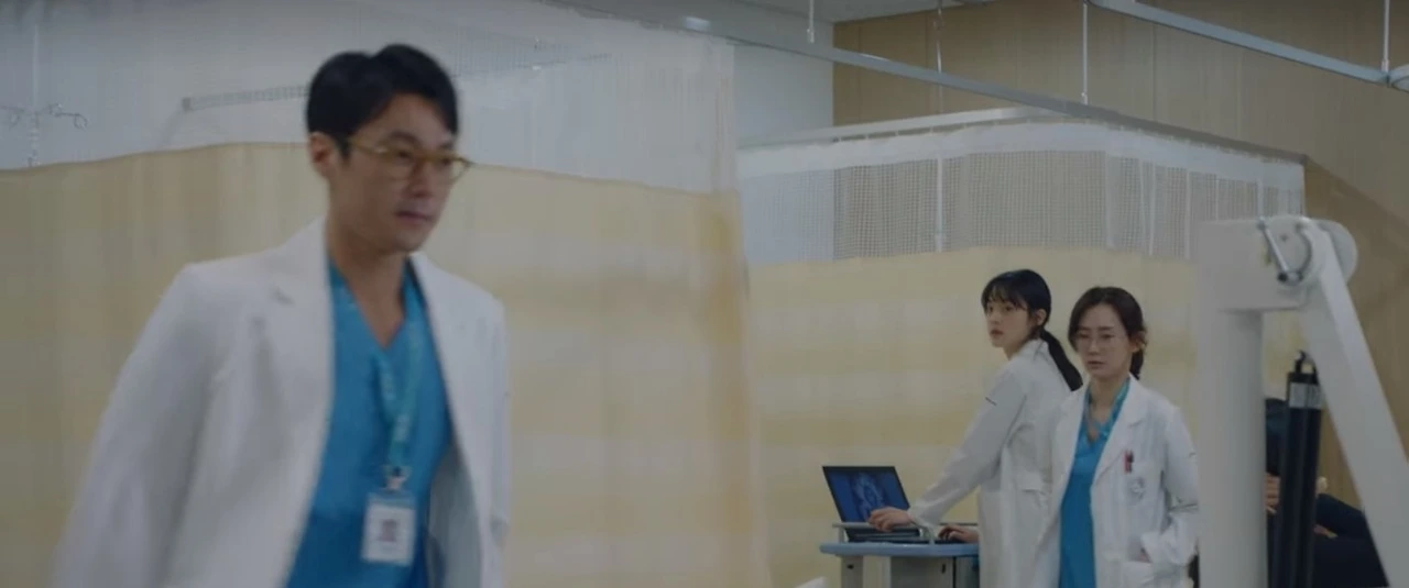 슬의생 보면서 결정러(장겨울-안정원) 팬이어서 이 부분 먼저 기록남겨 봅니다. 현장 자문의들은 의학적 씬에서 주위 배우분들의 움직임, 손의 위치, 손모양 등 디테일한 부분도 감독님과 같이 의견을 드리는데 2화에서 처음 장겨울 선생(신현빈 배우님)을 처음 만났습니다. 지금 생각해 보면 역할에 몰입하고 계셔서 대사 이외에는 잘 말씀 안하셨던 것 같습니다. 2화에서는 아직 성숙되지 않은 장겨울 선생의 모습이 그려지는데 아래 장면에서 처음에는 손을 다소곳하게 모으는 모습이었습니다. 이전 제 수련 기억을 되돌려 보았을때 성숙되지 않은 모습이 있는 선생님들은 주로 타과 선생님들과 트러블 났던 기억이 있어서 아래처럼 손을 주머니에 넣는 예의에 어긋난 모습을 해보자고 감독님께 제안드렸고 받아 주셔서 아래 장면이 나오게 되었습니다.
