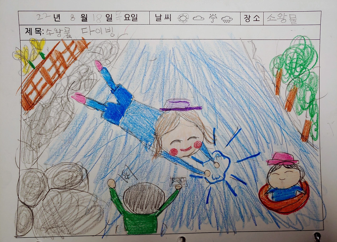다 끝난 게 아니었다. 단비는 빈 부분을 파란색으로 채워 넣었다. 나 어릴 땐 바탕은 한 가지 색으로만 색칠하는 건 줄 알았는데 그러지 않아도 되는구나.