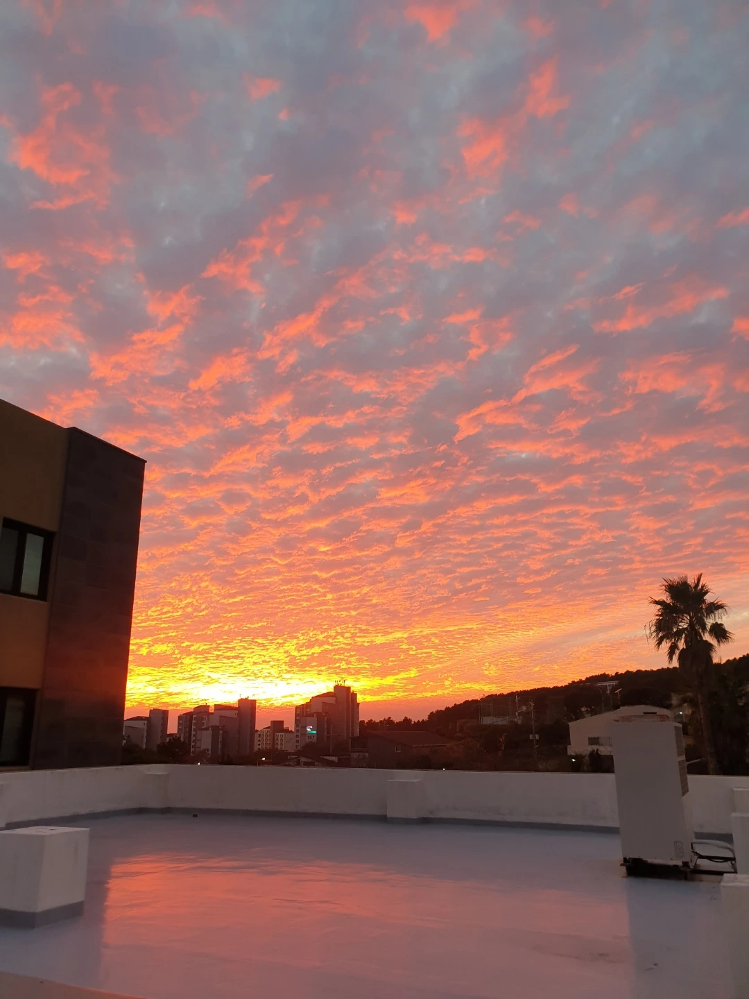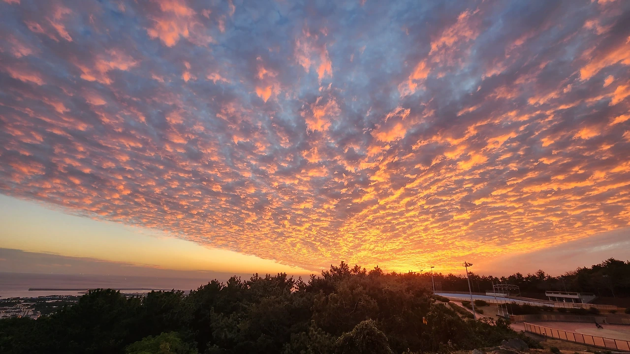 그날도 그랬다. 클린하우스에 쓰레기를 버리러 가면서 무심코 서쪽 하늘을 바라봤다. 와아... 나도 모르게 핸드폰에 손이 갔다. 이건 찍어야 해! 찍자마자 뜬잡모(뜬구름 잡는 모임) 단톡방에 사진을 올렸다. 지금 당장 서쪽 하늘을 바라보라는 지령(?)과 함께.