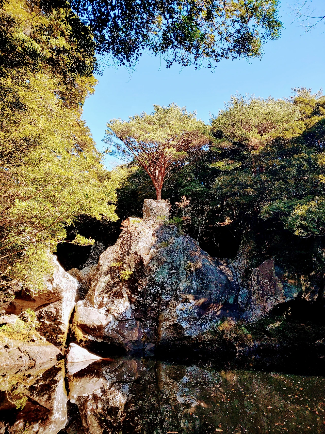 속괴는 여전히 빼어난자태를 뽐내고 있었다. 직사각형 화분에 꽂혀있는 것처럼 보이는 적송이 어쩌다 저 바위 위에 뿌리내리게 됐는지는 볼 때마다 미스터리.