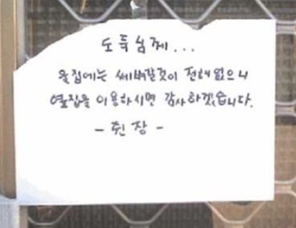 추리닝 4벌을 비롯해 대략 38,000원가량의 피해를 입은 그는 상심한 얼굴로 학교에 나타났다. 그리고 그나 '도둑님께'로 시작하는 편지를 집 입구에 써 붙였다.