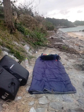 숙소를 구하지 못해 바닷가에 침낭 펴고 자던 날