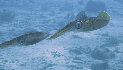 비교적 수심 얕은 바다의 바닥에 붙어서 다음 포인트로 이동하는데, 오징어 한 마리가, 횟집 수족관에서는 수없이 많이 봤지만 바다에서는 본 적 없는 오징어 한 마리가, 내 옆을 스쳐 지나갔다. 자기보다 훨씬 덩치 큰 나를 겁도 없이 스쳐 지나가더니 열 개의 다리를 한 번에 오므렸다 펴면서 미끄러지듯 앞으로 나아갔다. 연체동물 특유의 그 유연한 움직임이란! 그러고 보니 오징어를 바닷속에서 만나는 건 흔할 것 같지만 흔치 않은 일이다. (자고 있는 갑오징어는 본 기억이 있는데 실제 오징어를 바닷속에서 본 것은 그때가 유일하다. 바닷속에서 만나기 쉬울 것 같은데 의외로 잘 안 보인다. 떼로 다녀서 그런가, 깊은 바다에 살아서 그런가 추측만 할 뿐이다)