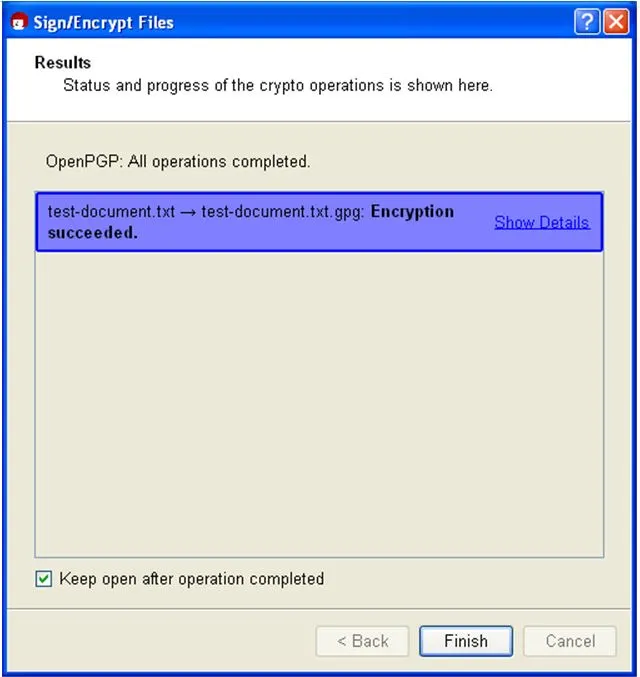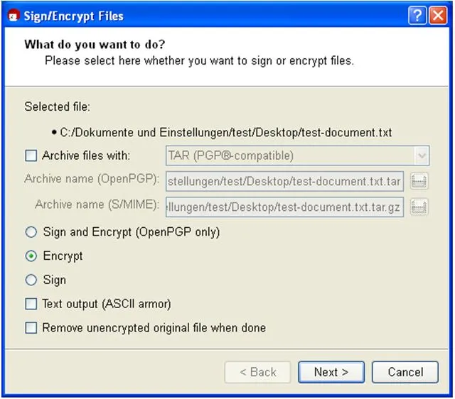 <filename>.txt 는 <filename>.txt.gpg이거나 출력파일을 text/ASCII-armor를 선택하면