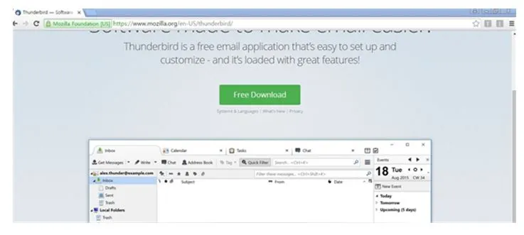 https://www.mozilla.org/en-US/thunderbird/ 와 같은 모질라 썬더버드 웹사이트에 방문한다.