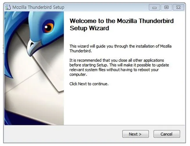 모질라 썬더버드 설치 윈도우가 뜬다.