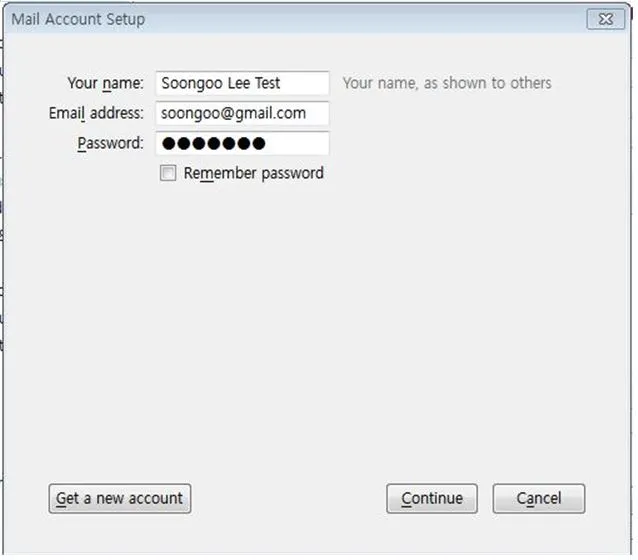 썬더버드는 자동적으로 해당 메일 서버로 가서 필요한 설정사항을 탐지한 다음 메일서버에 저장되어 있는 이메일을 내 컴퓨터로 다운로드 하기 시작한다.