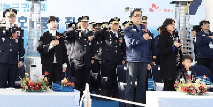 "어머, 이렇게 귀여운 아가가 진수식에 왔군요. 아이가 있으니 분위기가 한결 부드러운 걸요?"