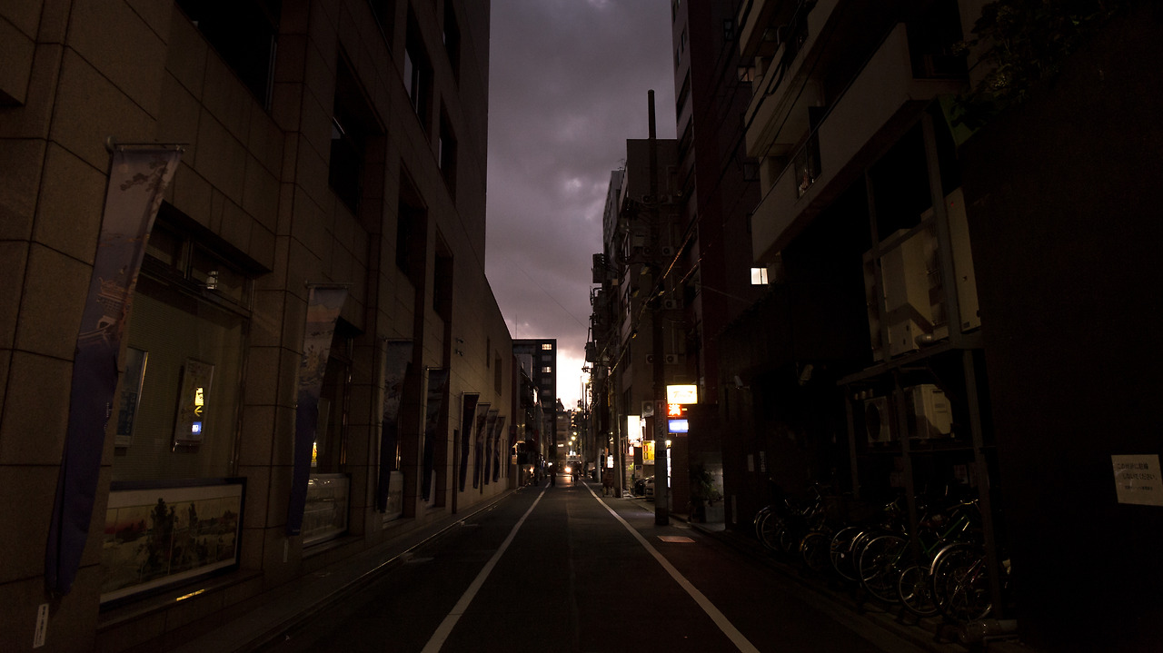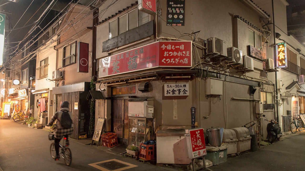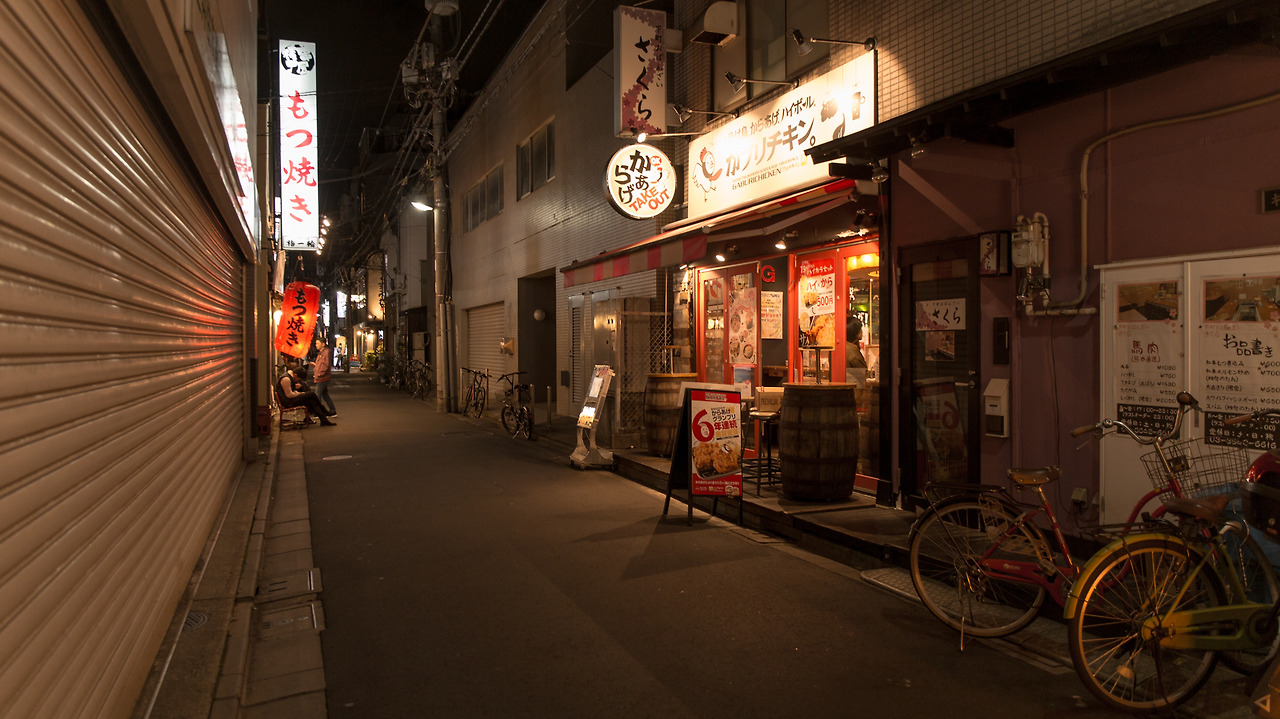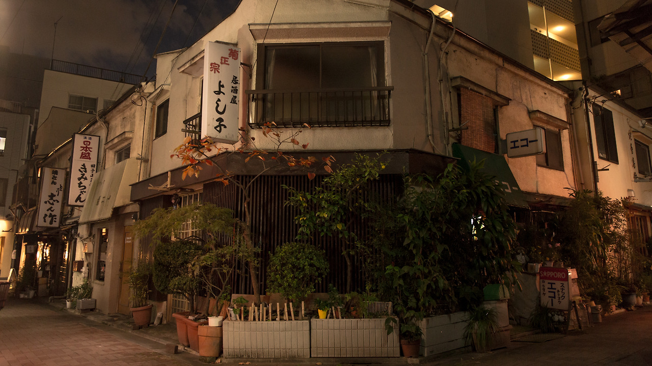 오후 기타센주의 이미지가 상점과 주택 사이였다면 이번 몬젠나카쵸는 술집과 주택 그 사이다.