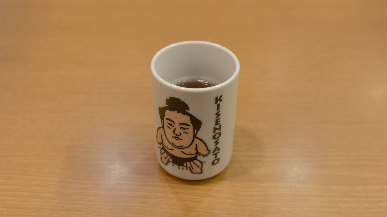 마찬가지로 먼저 진한 차가 나온다. 컵에 그려진 기세노사토 유타카는 귀엽게 묘사된 것과는 달리 올해 72대 요코즈나(스모에서 최고의 직위)에 등극한 스모 선수라고 한다. 상상 속의 힘 때문인 건지 제대로 손에 쥘 수도 없을 정도로 차가 뜨겁다. 입구 쪽에서 2쌍의 젊은 커플이 연이어 들어와 크림 빙수를 주문한다. 내 것으로 보이는 먹음직스러운 것들이 다가온다.