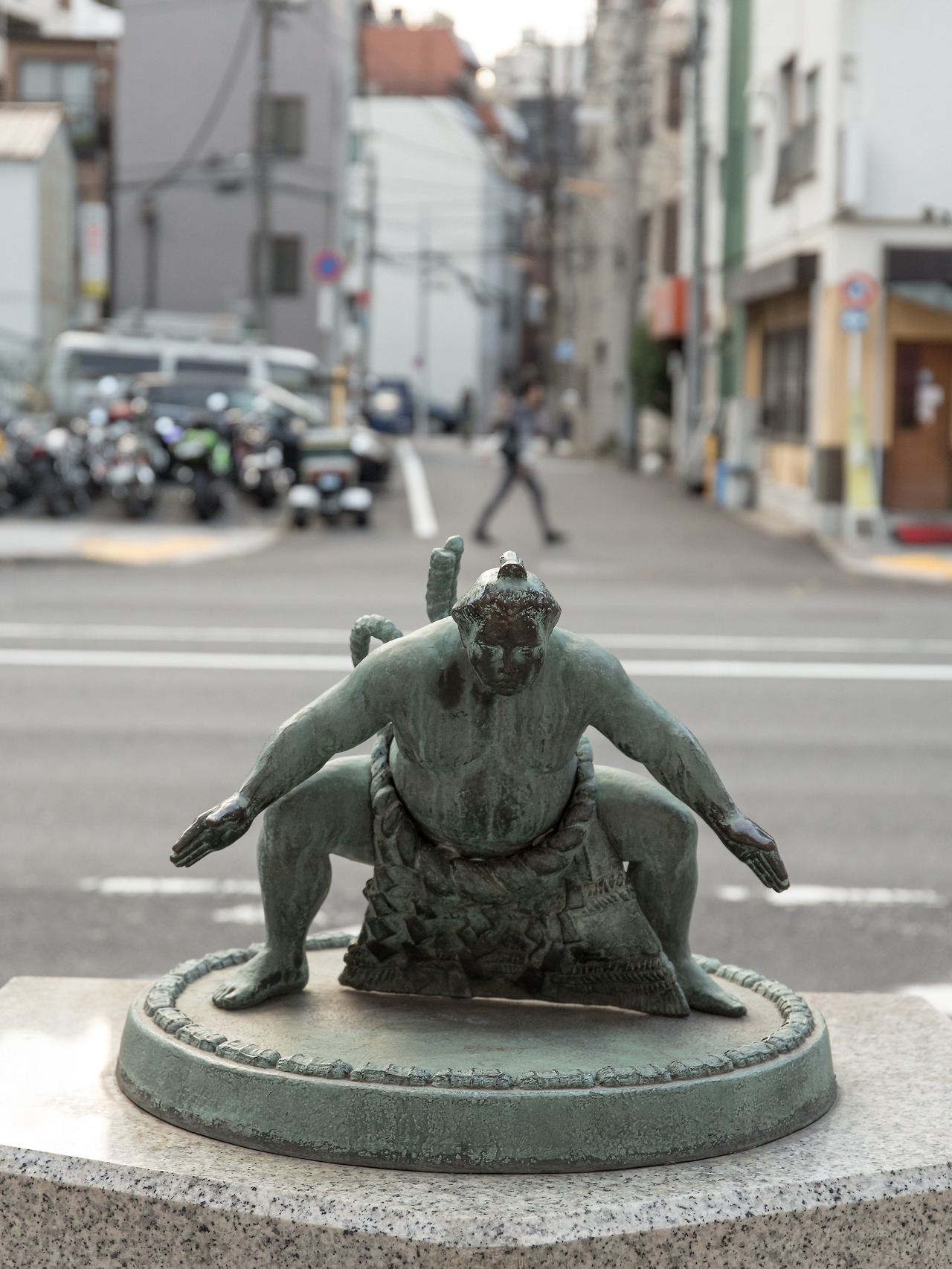 스미다 강 쪽의 큰 도로로 나오자 그제야 안심이 된다. 아담하다 못해 귀여워 보이기까지 하는 작은 스모 동상이 거리 곳곳에 놓아져 있고 간판 속 한자들의 획에 힘이 더욱 들어가 있다.
