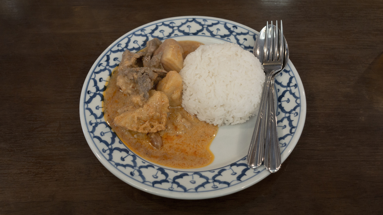 담백한 카레와 강렬한 불맛의 공심채볶음.