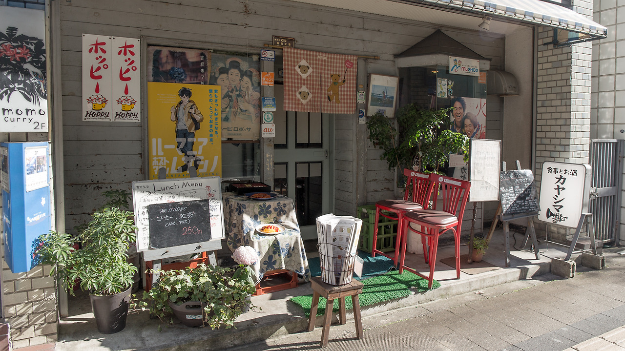 이노가시라 공원의 나름대로 한적한 여유가 끝나고 사람들과 차들이 다시 많아지는 시점에 이른다. 기치조지(吉祥寺). 역 주변은 미타카, 기타센주와 마찬가지로 백화점으로 둘러쌓여 있다. 감상은 일단 나중으로 미룬다. 아름다운 푸른 호수에 매료되어 계획보다 일정이 조금 늦쳐졌기 때문이다. 정면 방향으로만 계속 가면 되니까 찾아가는 길은 쉽다. 횡단보도를 몇 번이나 건넌다. 그런데 땅값 비싸보이는 대로변에 그 가게가 정말 있는 걸까.