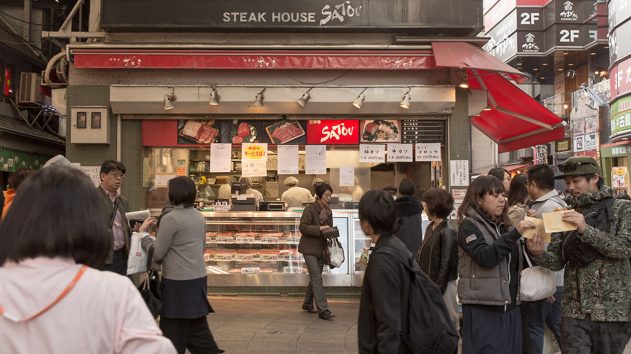드라마에서 고로상이 멘치카츠를 구입했던 정육점 사토우 미트숍도 보인다. 기다리는 사람이 많을거라는 건 어느 정도 예상했지만 반대편 길에 닿을 정도의 인기는 그 범위 밖이다. 정육점에서 파는 멘치카츠, 그 이름만으로도 믿음직스럽다.