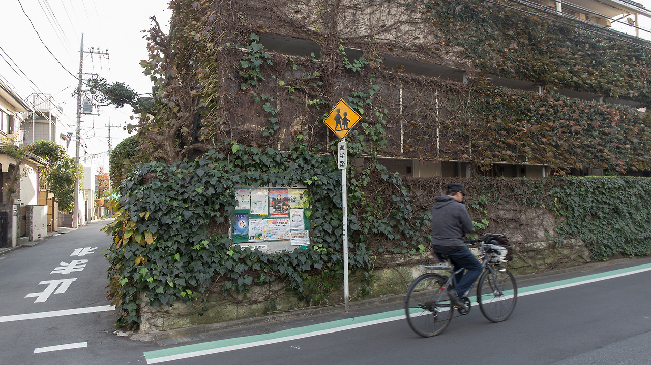 기치조지의 동쪽으로 걸어간다. 철길은 수평으로 이어져 있고 도로는 대각선으로 기울어져있다. 가로와 세로의 길을 적당히 번갈아가며 평화롭기까지한 일요일 오후의 한적한 주택가를 걷는다. 햇빛은 여전히 강하지만 그늘에서 마주한 초록색의 식물들은 카메라 뷰파인더로 보아도 부담이 없다.