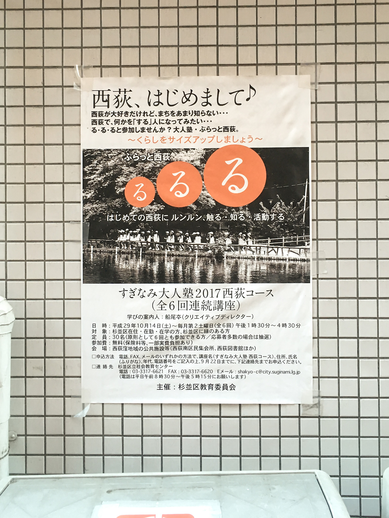오랜 정취를 풍기는 남루한 술집이 많았던 역 앞의 느낌과 다르게 니시오기쿠보의 남쪽 상점가는 어떤 면에서 세련된, 유쾌한 숍들이 많다. 진부하지 않은 색이나 유쾌한 아이디어를 기반으로한 포스터들이 그런 거리의 분위기와 잘 어울린다. 소박한 크기의 둥근 창 안으로 살짝 보이는 연보랏빛 커튼은 다름 아닌 아닌 사립병원의 것이다. 대체로 이런식의 분위기.