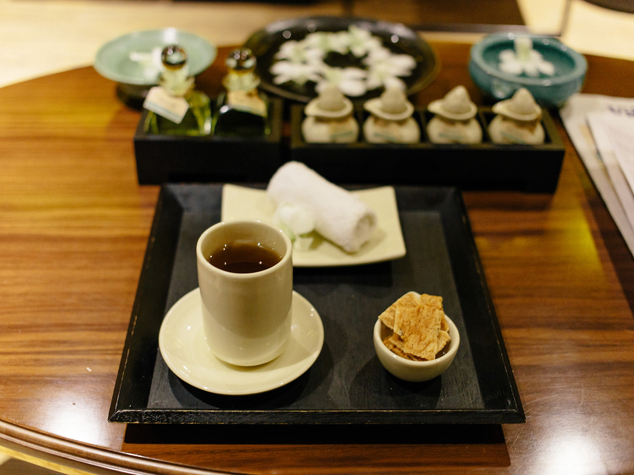 제대로 밤이 찾아왔고 몸도 제대로 피곤해진 상태. 남자 사람 혼자 사진 여행과는 다소 맞지 않는 일정을 소화하려 한다. 동남아시아 여행에서 마사지를 안 받고 그냥 가는 건 제주도에 와서 바다를 안 보고 가는 것과 같다. 영어가 잘 통하면서 쾌적한 환경을 기대할 수 있는 라 시에스타 스파 La Siesta Spa로 미리 예약해두었다. 예약 시간보다 15분 일찍 도착한다. 정장 차림의 짧은 커트를 한 여직원이 안내를 받아 자리에 앉아 있으니 곧 물수건과 차, 간단한 과자가 나온다. 솔직히 그다지 맛있는 편은 아니다. 이 정도로 환영한다는 마음만 감사히 받겠습니다. 간단한 체크 폼을 통해 마사지 강도와 오일을 선택할 수 있고 추가로 어떤 부위에 더 신경을 쓰면 좋은 지도 체크할 수 있다. 내가 선택한 코스는 Relaxation treatment 90 Min으로 강도는 Strong(그다음으로는 Very Strong이 있다), 오일은 Tamaru Oil과 Cajeput이다.