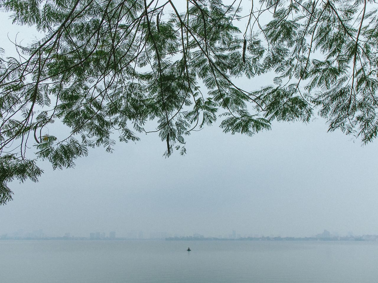 생각대로 어마어마한 규모이다. 한강보다 훨씬 아득한 거리감이 느껴진다. 지평선 끝에는 흐리지만 확실한 문명의 존재가 보인다. 그 사이에 떠 있는 작은 레저용 1인용 보트만이 비현실적으로 느껴지는 이 곳에서 미비하게나마 현실의 축으로 기울게 만든다.