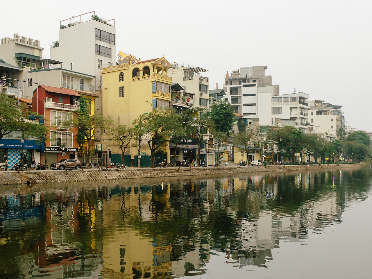 강의 면적이 서호보다 상대적으로 작아서인지 강 위에 떠 있는 오리배를 제외하면 호안끼엠 호수의 풍경과 크게 다를 게 없는 듯하다. 낮은 플라스틱 의자를 깔아놓은 채 길거리 음식을 팔고 벤치에 앉아 대화를 나누는 하노이 시민의 모습들. 그 사이로 울통을 벗은 남자가 이어폰을 낀 채로 쏜살같이 지나간다. 반대편 서호는 이쪽과는 조금 다른 광경이다.