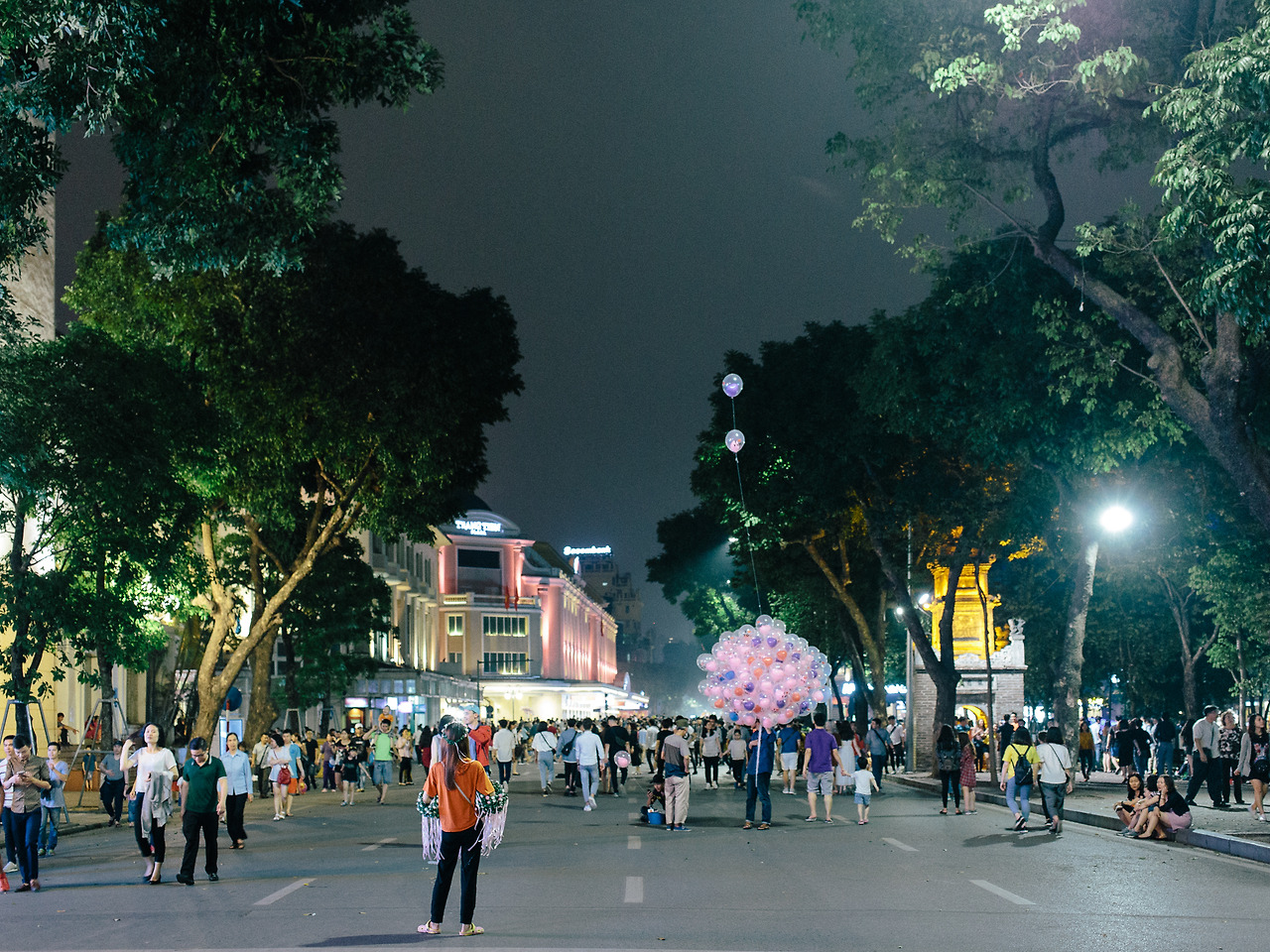다시 구시가지의 시작점으로 돌아온다. 낮의 모습과 다르게 차량 통행을 모두 막아둔 상태. 주말이 시작된 것이다. 거리로 나온 인파 사이로 야광 로켓이 날아간다. 푸드트럭에서 파는 길거리 음식들과 버스킹 공연의 익숙한 장면들과 참여하고 싶을 만큼 활기찬 하노이 밤. 호안끼엠 호수에서 오페라하우스 근처의 숙소로 이동하는 동안 모든 장면들이 마치 영화처럼 스쳐간다.