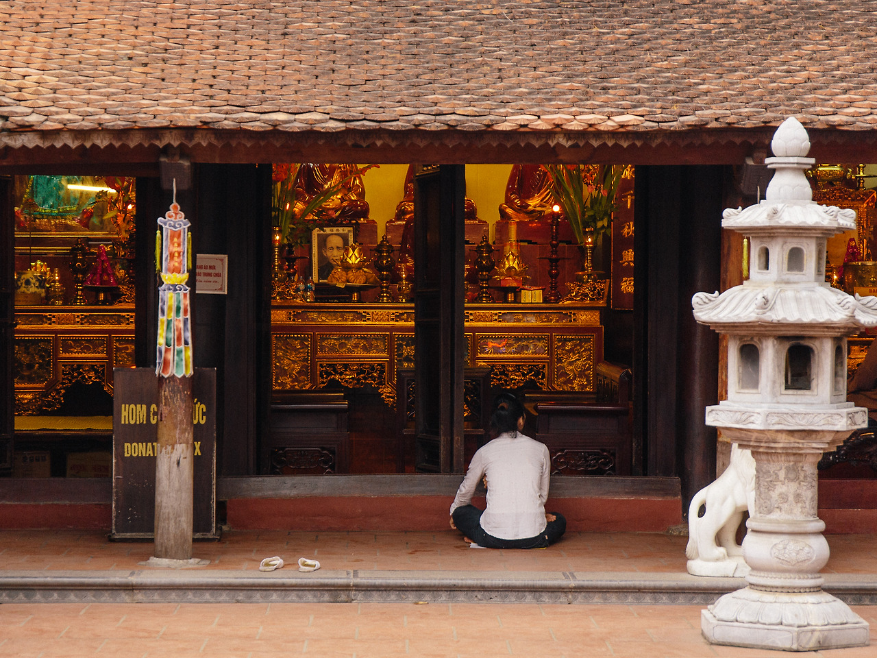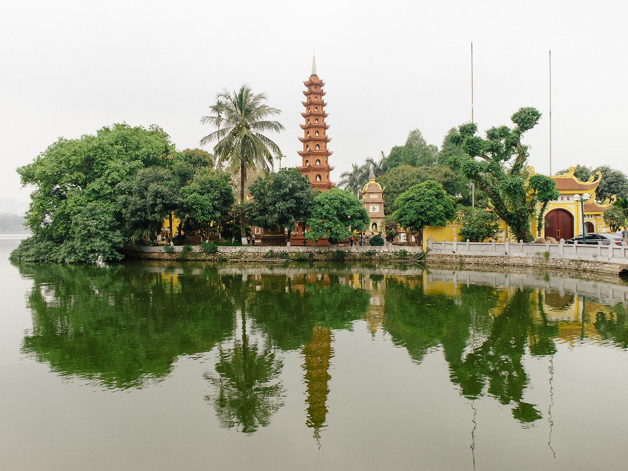 쩐꾸옥 사원(Chùa Trấn Quốc, 鎭國寺)은 마치 중국 본토에 와있는 듯한 착각을 불러일으킬 만큼 그 외관이 화려하다. 오전에 보았던 탕롱 황성의 자연스럽게 빛바랜 색과는 다소 차이가 있다. 호안끼엠 호수의 응옥썬 사원과는 다르게 이곳은 무료입장이다. 사원이 호수 위에 있다는 점과 작은 규모. 큰 차이는 없어 보이는데 왜 입장료 체계는 다른 걸까? 오른쪽 문을 통과하면 비슷해 보이는 작은 사당이 보인다.