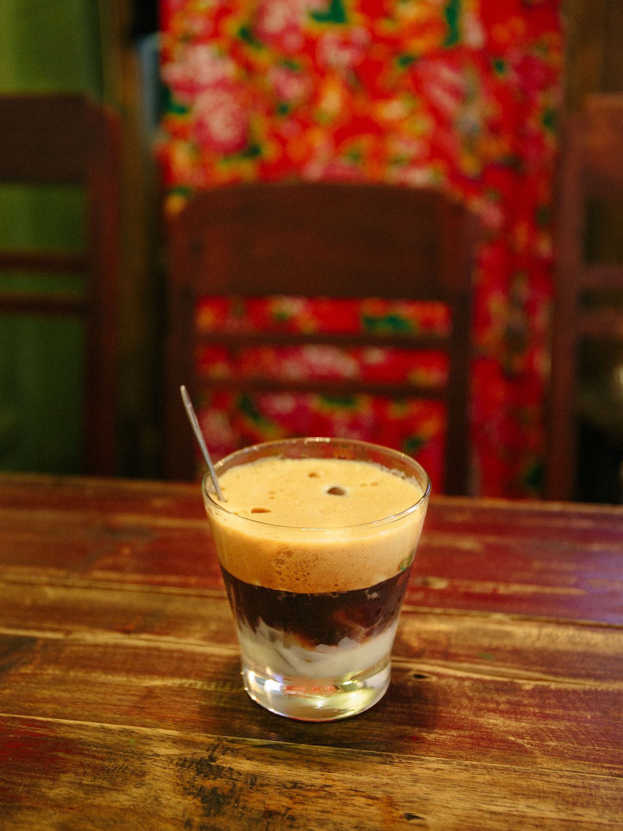 온도를 유지하며 마실 수 있게 따뜻한 물이 담긴 상태로 에그 커피가 나온다. 도대체 계란을 넣은 커피 맛은 어떤지 궁금해서 일단 그대로 입에 대고 커피를 쏟아 넣는다. 카페 쓰어다 못지않은 달콤함이 확 올라온다. 진하고 부드러운 크림을 넣은 듯하다. 블라인드 테스트로 앞에 놓아져 있다면 계란이 들어있다고는 상상할 수 없었을 것이다. 수저로 휘젓다가 위로 끌어올리면 확실히 끈적한 농도가 느껴진다. 아래층에서 계산을 하고 나온다.