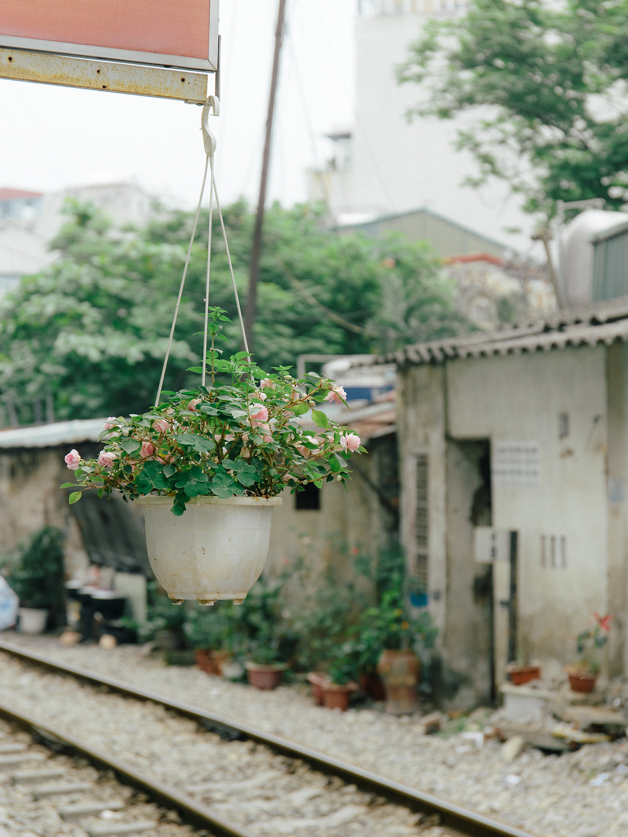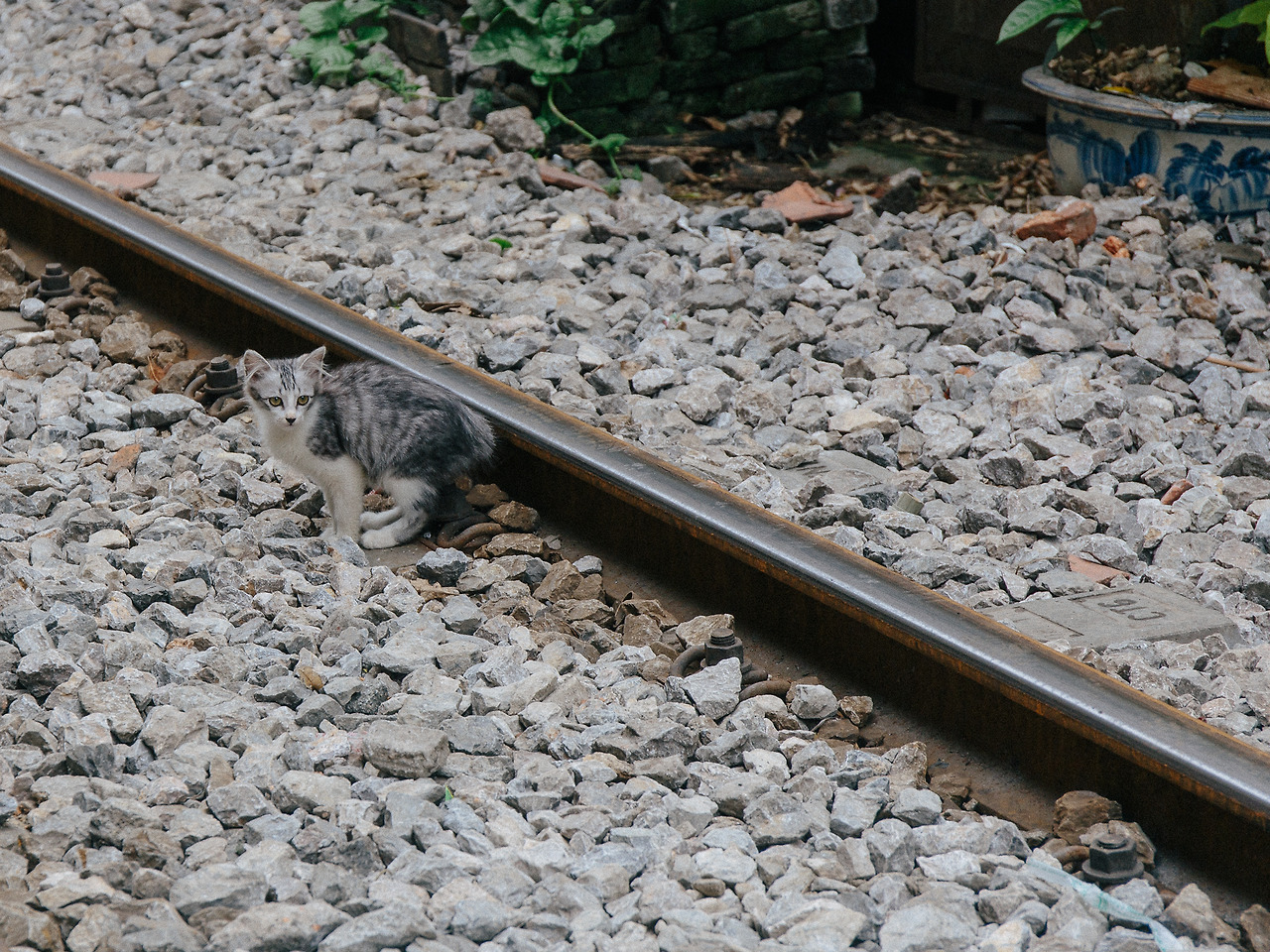 휘어지는 레일을 따라 집들도 역시 곡선을 그리고 있다. 기찻길 마을의 시작점이라고 할 수 있는 남쪽 입구에서 꽤 떨어진 곳이라 그런지 주말에도 조용하다. 카페나 소품샵 같은 편의시설도 거의 보이지 않는다. 그래서인지 관광객의 신분을 한 사람은 나 밖에 없는 듯하다. 집 앞이 곧 철로 옆 자갈이 되는 좁은 곳에서 가물치 튀김을 요리하는, 꽃을 가꾸는, 3층에서 2층으로 내려오는 그런 지극히 일상적인 것들이 보인다.