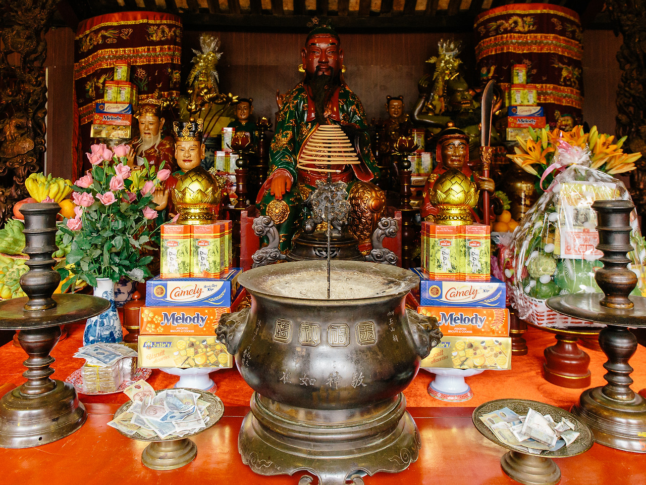 서호에 쩐꾸옥 사원이 있고 비슷한 상황으로 호안끼엠 호수에는 응옥선 사당이 있다. 호안끼엠 호수와 응옥선 사당을 잇는 빨간색 테 훅 다리는 낮이건 밤이건 항상 인기가 많다. 다리 끝에 있는 매표소에서 입장료 30,000 VND을 구입. 응옥선 사당 안으로 들어가면서 산책에서 관람으로 잠시 여행 태도를 바꾼다.