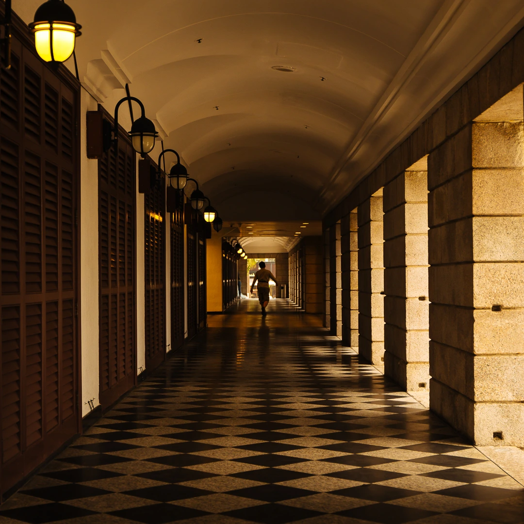 3층 높이의 석조 건축 머레이 하우스(Murray House, 美利樓)를 둘러보았다. 먼저 우아한 기풍의 외관을 배경으로 웨딩 촬영 중인 모습을 볼 수 있었다. 건물 내부는 수십 개의 돌기둥과 수만 개의 벽돌 그리고 체크판 무늬의 바닥이 인상적이었다.