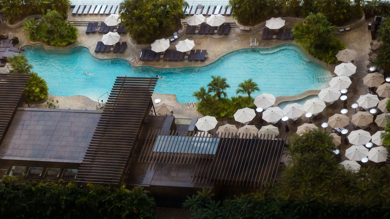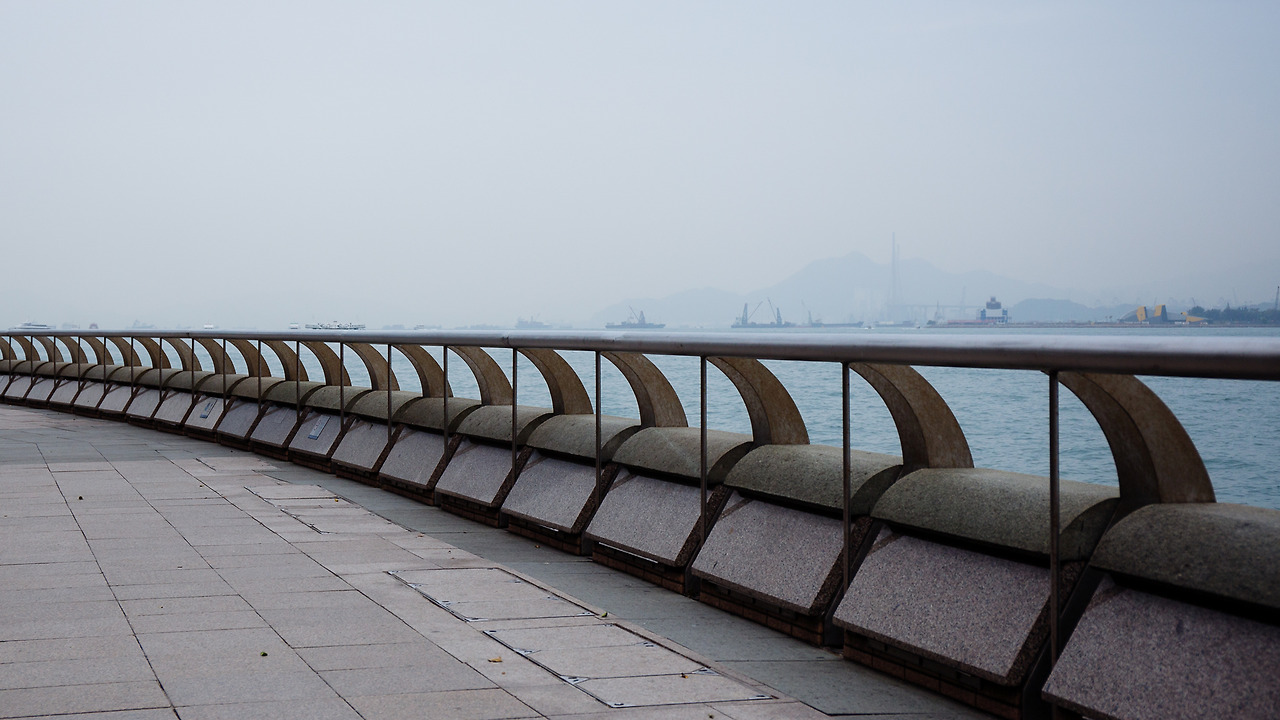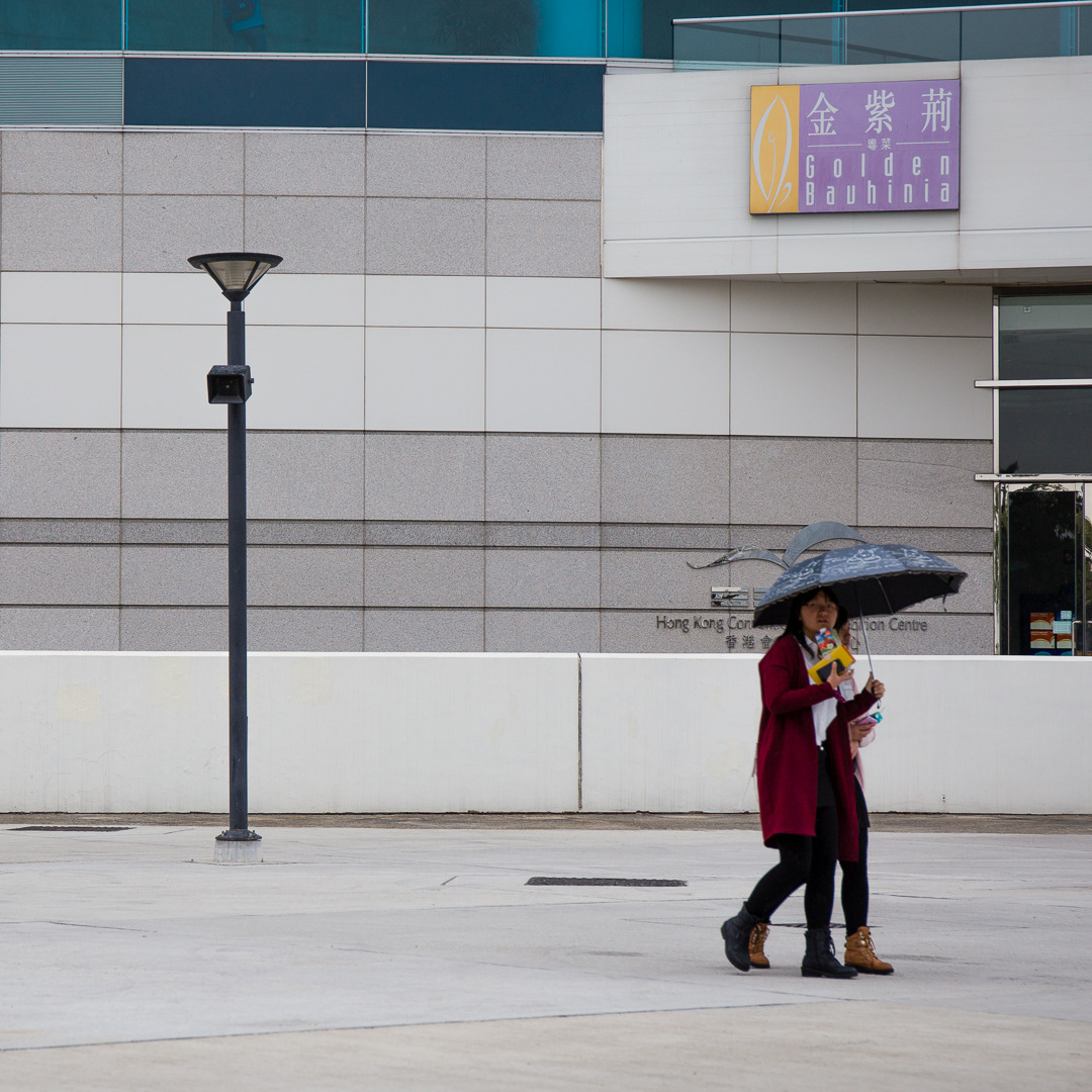 해안 산책로(Expo Promenade)쪽으로 나왔다. 골든 바우히니아 광장(Golden Bauhinia Square, 金紫荊廣場)에는 중국 관광객이 많…다고 생각하는 와중에 비가 내렸다. 여행을 위해서 구입한 EOS 6D와 24-70mm f4 렌즈는 비 정도 맞아도 괜찮아 보이게는 생겼지만 왠지 남은 여행을 망칠까봐 빠르게 실내로 들어갔다 ㅎㄷㄷ