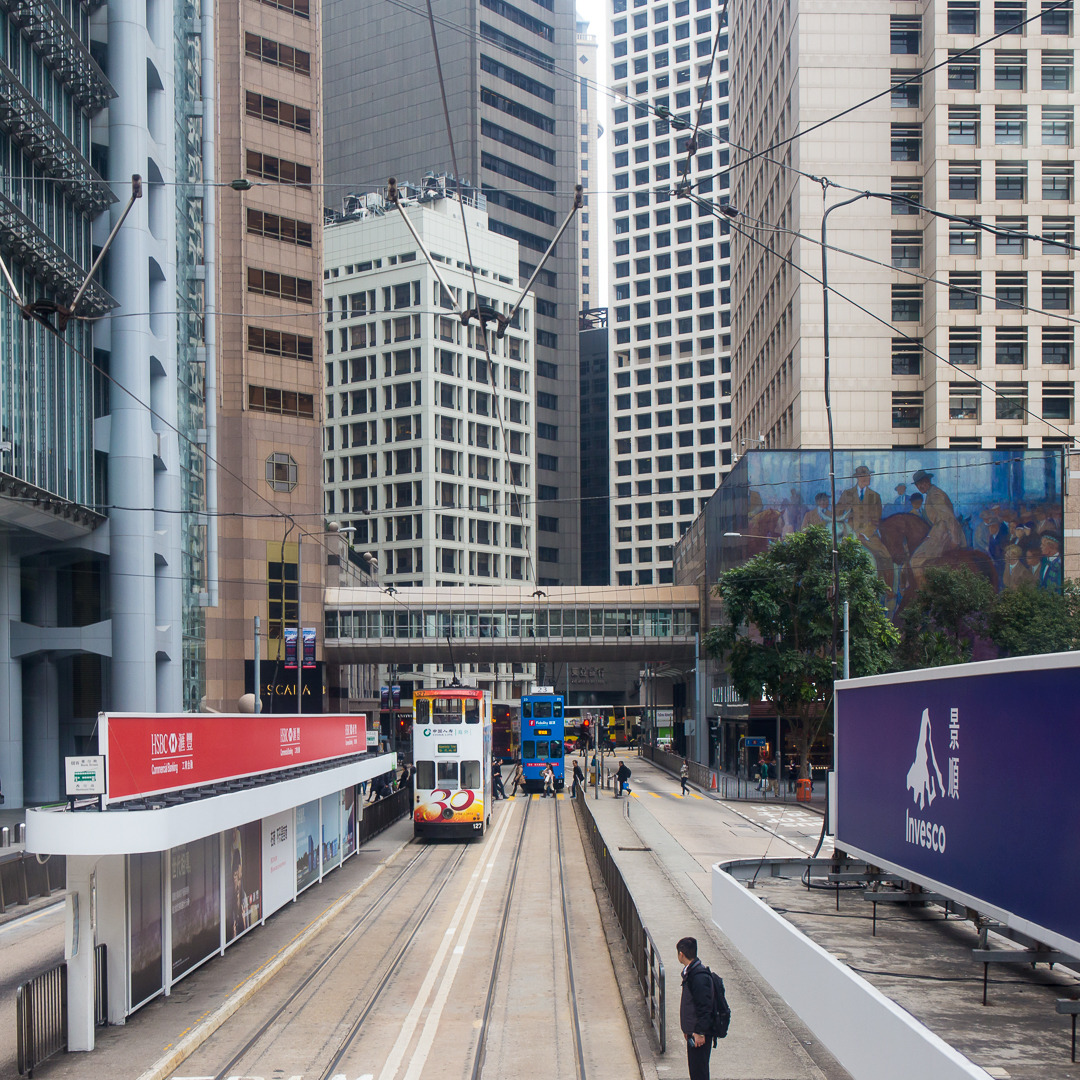 트램 - 완차이, 홍콩 컨벤션 센터, 센트럴 플라자, 홍콩 아트 센터, 블루 하우스 - 조이힝 로스트 미트 - 이순 밀크 컴퍼니 - 라이탁 아파트 - 익청 빌딩 - 코즈웨이 베이, 하이산 플레이스, 애플 스토어, 폴 라파예트, 카페 무지 앤 밀 - 셩완, 허니문 디저트 - AEL - 홍콩 국제 공항