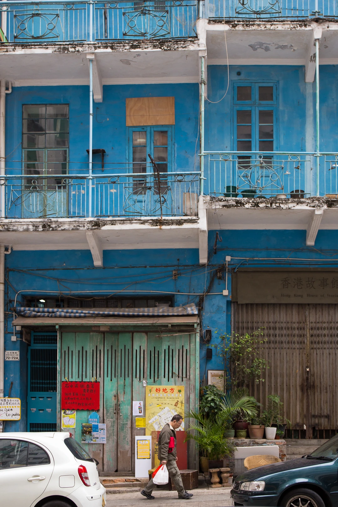 완차이에는 특히 오래되어 보이는 주택이 많이 보였다. 홍콩에서 가장 오래된 건물인 블루 하우스를 찾아가는 길에 컬러풀한 맨션도 볼 수 있었다. 가까이에서 본 블루 하우스는 페인트가 거의 벗겨질 정도로 세월의 흐름이 느껴졌다.