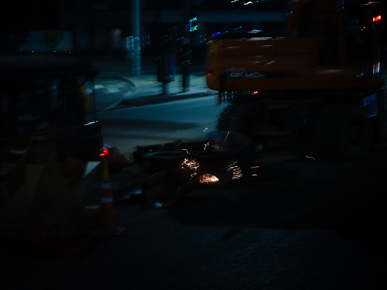 모자를 눌러쓴 금지씨의 친구는 행인이 지나갈 때마다 "자전거 지나가요"라고 주의를 주거나 금지씨의 표정을 더 자연스럽게 이끌어 내는 든든한 역할을 해주었다. 몇 분 후 친구는 정말 장을 보러 떠났고 우리는 계속 촬영을 이어 나갔다. 셔터를 누를수록 밤은 더 깊어간다.