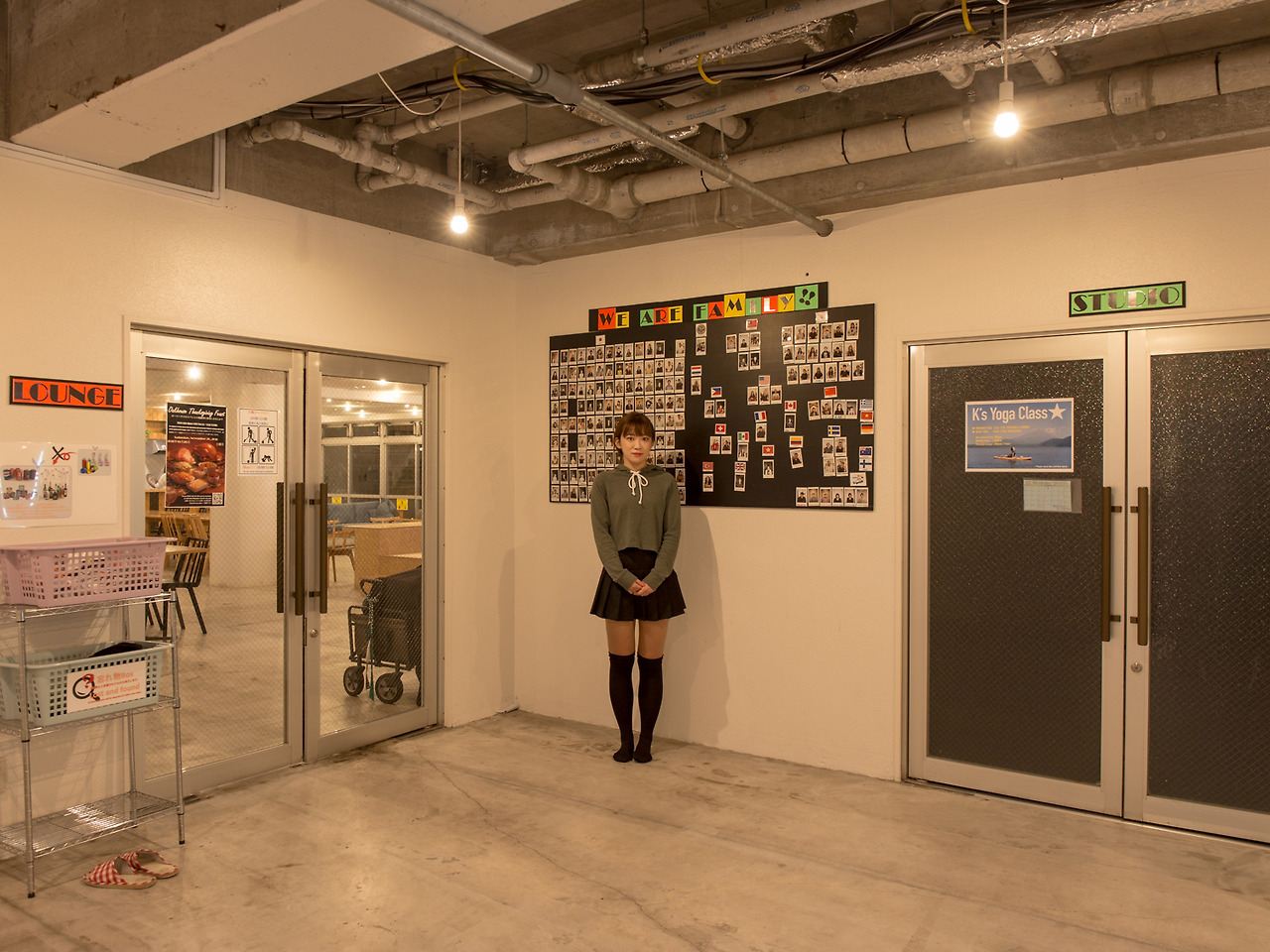 이어 도착한 곳은 오크 하우스라는 이름의 쉐어 하우스. 몇 분 전 150명이 사는 곳이라는 말에 조금 당황했지만 건물의 규모를 보니 고개가 끄떡거려졌다. 더 재미있는 장면을 찍을 수 있을 것 같아 양해를 구하고 함께 내부로 들어왔다. 인원수를 짐작케 하는 많은 캐비닛을 보인다. We Are Family라는 문구 아래 폴라로이드 사진들이 가득한 것이 먼저 눈에 들어왔다. 다양한 국적인 친구들이 살고 있는 쉐어 하우스의 특징을 그대로 보여주고 있다 생각했다.