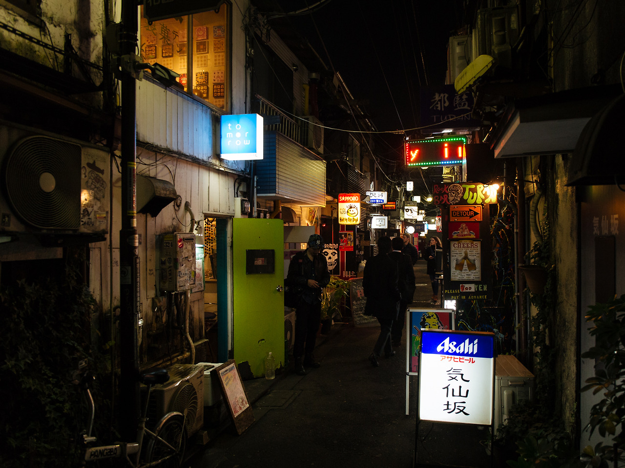 성수동에서 함께 전시했던 유진씨가 신주쿠의 Golden Gai란 곳을 추천해주어서 우리는 그곳에 가보기로 했다. 넉넉 잡아도 5평도 안 되는 좁은 술집들이 빼곡히 들어서 있다. 마치 이태원 골목과 옛 아현 고가 밑 매춘 거리와 비슷한 풍경이다. 실제로 이 곳은 매춘이 행해지던 사창가였다가 1958년 매춘 방지법 시행을 계기로 1950년대의 모습을 간직한 술집 골목으로 변신하였다고 한다. 유리창 너머로 보이는 술집 안의 광경 또한 굉장하다. 외국인들ㅡ나도 여기선 외국인이지만ㅡ이 그 좁은 곳에서 노래를 부르고 있다.
