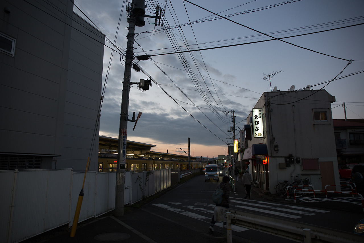 살짝 밤이 되어버린 하이지마 역(拝島駅, はいじまえき)에서 금지씨를 만났다. 함께 나온 친구는 장을 보러 나온 김에 잠시 구경하러 왔다고 했다. 역 뒤편으로 걸어가자 '여기까지 왔으니 조금은 더 기다려 줄게' 하고 말하듯 토요일의 마지막 노을이 그런대로 남아 있었다. 침착하게 트라이 포드를 꺼내 촬영을 시작했다.
