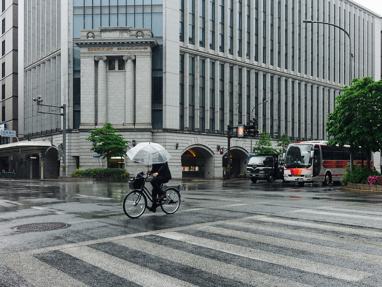 호텔 앞에서 우산과 간단한 아침 거리를 샀다.