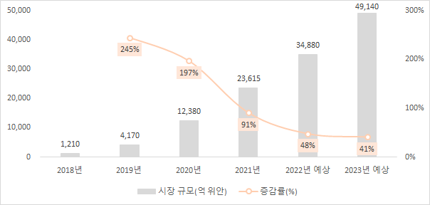 <2018~2023년 중국 라이브커머스 시장 규모>