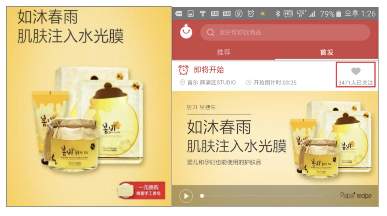 당시 한국 마스크팩은 많은 중국 고객층에게 사랑받고 있었습니다. 파파레서피 마스크팩도 예외는 아니었습니다. 실제로 중국 시장 조사를 통해 파파레서피 제품에 대한 중국 고객들의 인지도가 높았습니다. 이미 웨이보나 웨이신에서 봄비 마스크팩을 판매하고 있었습니다.