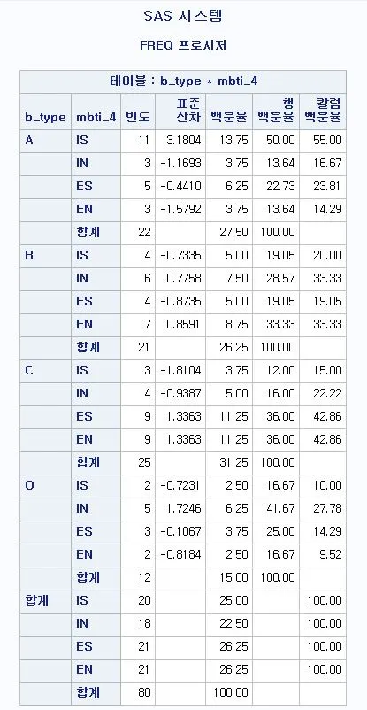tables b_type2*mbti_2/crosslist chisq stdres;