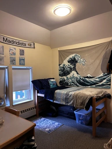 그로튼 스쿨 기숙사의 2인실의 구조는 방의 중앙으로 두개의 책상이 마주보며 일종의 공간 분리 역할을 하고, 책상 뒤로는 각 학생의 침대와 개인 공간이 펼쳐지는 형태이다. 방과 방 사이를 나누는 벽은 3/4 높이로 연결되어 있으며, 옆 방의 학생과도 가깝게 소통하며 생활할 수 있는 독특한 모양이다.