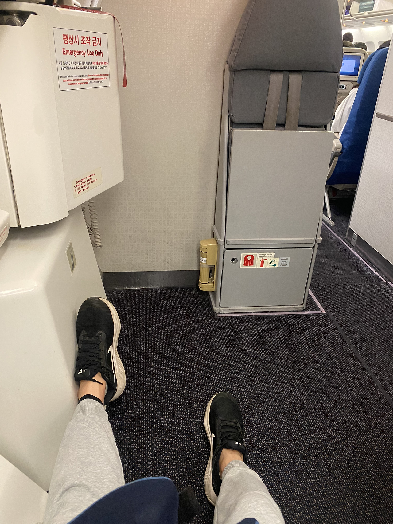 짐 부치며 티켓을 받으려는데 대한항공에서 나이와 영어 가능한 부분을 체크하더니 비상문 자리로 바꿔주셨다!