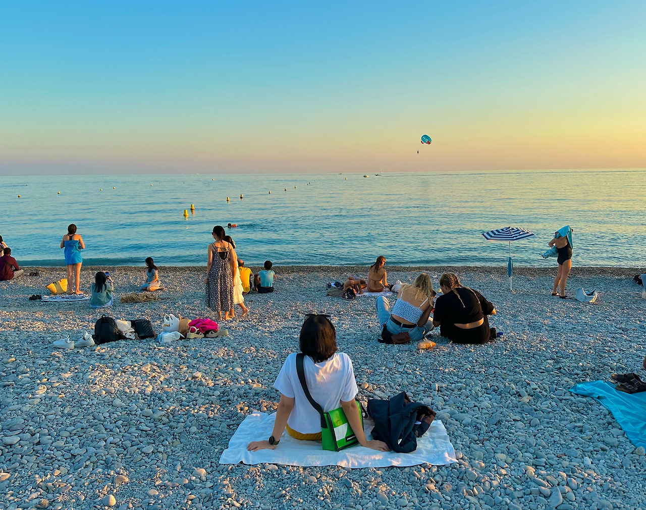 우리는 머물던 광장을 지나 해변가로 향했다. 정말이지 시간 타이밍이 기가 막혔고 우리가 바라본 모든 풍경은 예술이었다. 사진을 보면 카메라에 다 담기지 못했던 풍경도 눈앞에 펼쳐지기도 하고 시원하면서 잔잔하게 울려댔던 파도 소리도 귀에 맴돈다. 혹시나 싶어 가져온 큰 타월 덕분에 바닷가에 앉아서 꽤 오랫동안 감상에 젖었다. 그럼에도 여전히 아쉬움이 남아 마지막날에 다시 오기로 하고 머문 자리를 정리했다.
