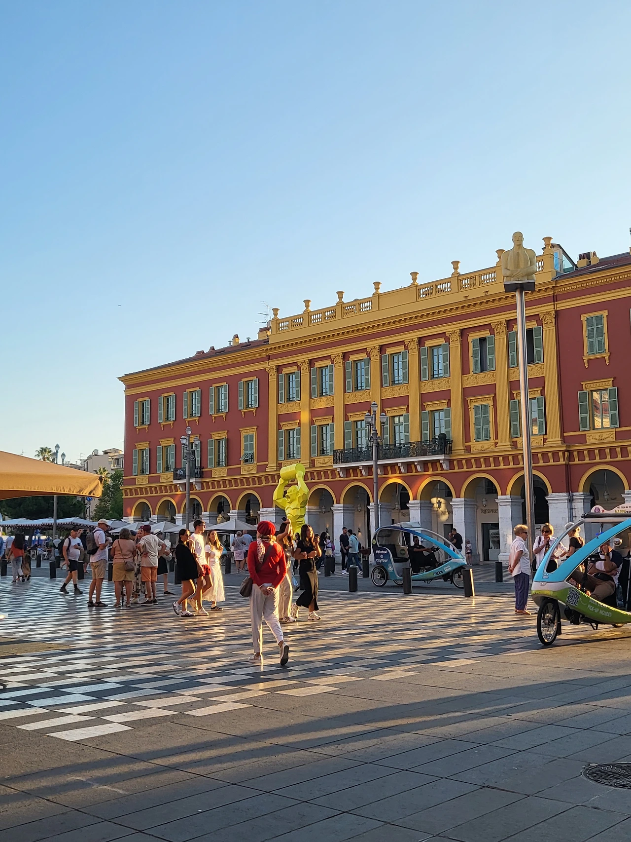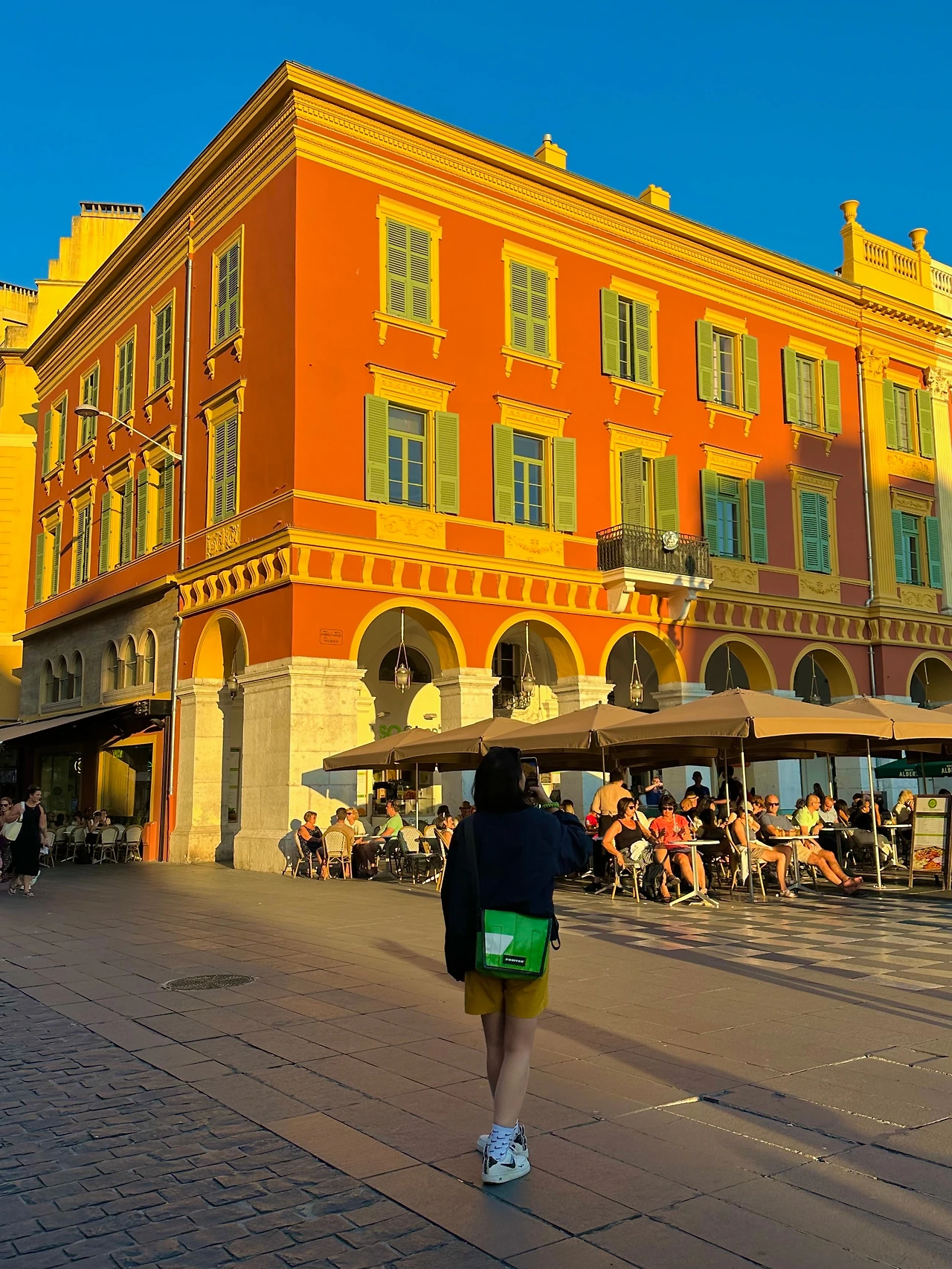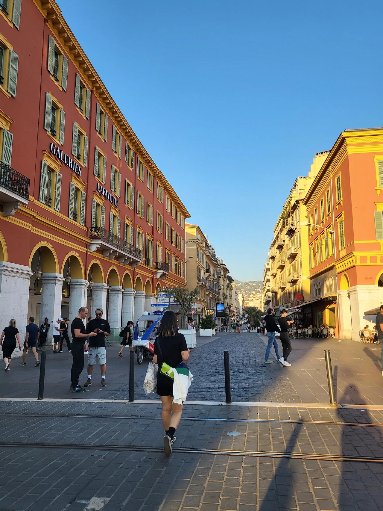 길거리를 구경하다 보니 어느새 니스의 대표명소인 마세나 광장에 도착했다. 핑크색 백화점 건물과 주황빛의 노을이 더해지니 이 광경이 더 아름답게 느껴졌다. 사람은 많은데 붐비는 느낌이 전혀 없어서 더 새롭기도 했다.