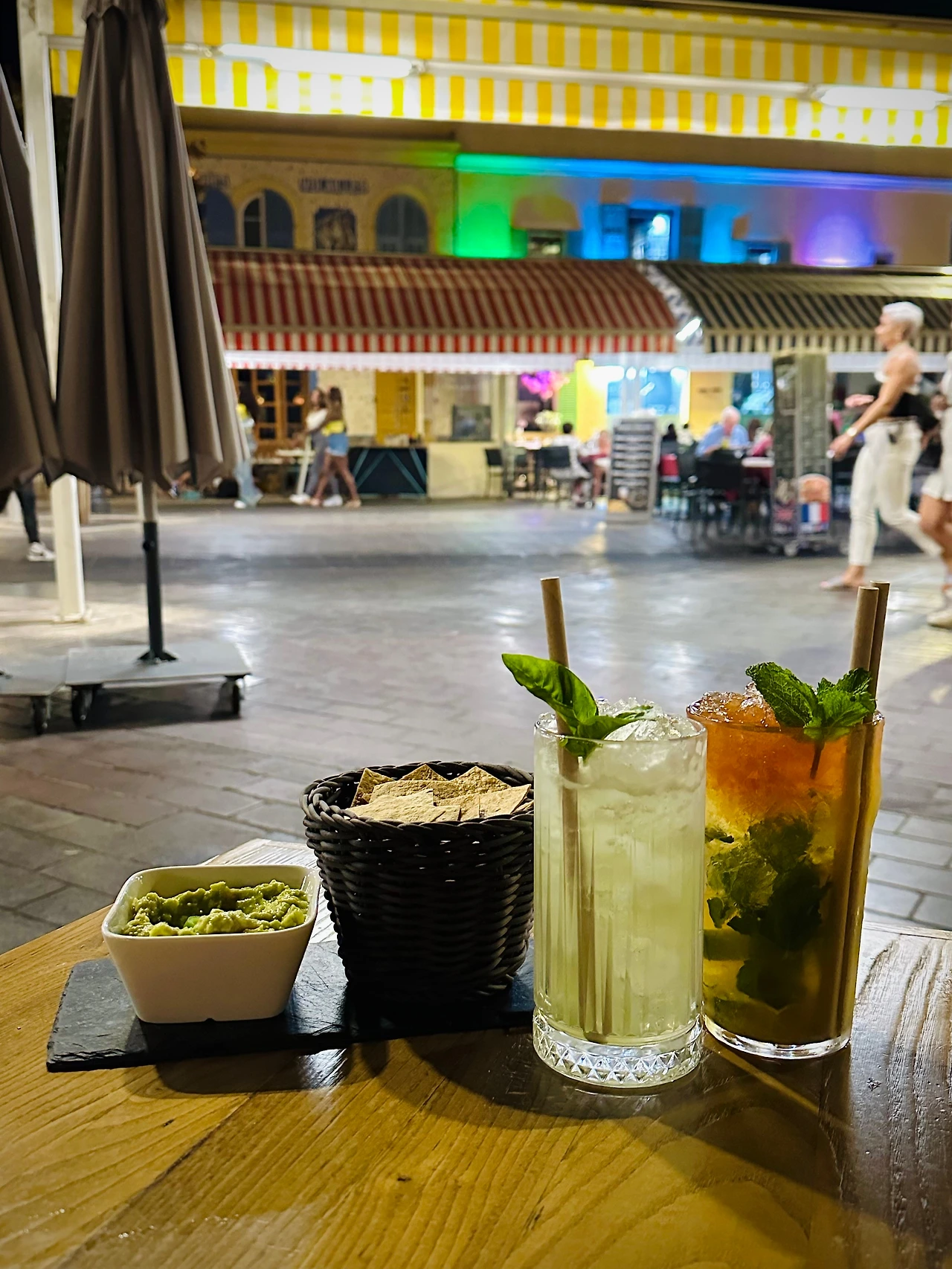 컴컴해진 니스의 밤까지 보고 캐슬힐에서 내려와 숙소로 가는 길, 기분도 몽글몽글하고 올드타운의 분위기가 너무나도 활발해서 또 그냥 지나칠 수 없었다. 서둘러 스캔을 하다가 Barbacane라는 곳에 자리를 잡고 앉아 칵테일 2잔과 나초, 과카몰리를 주문했다.