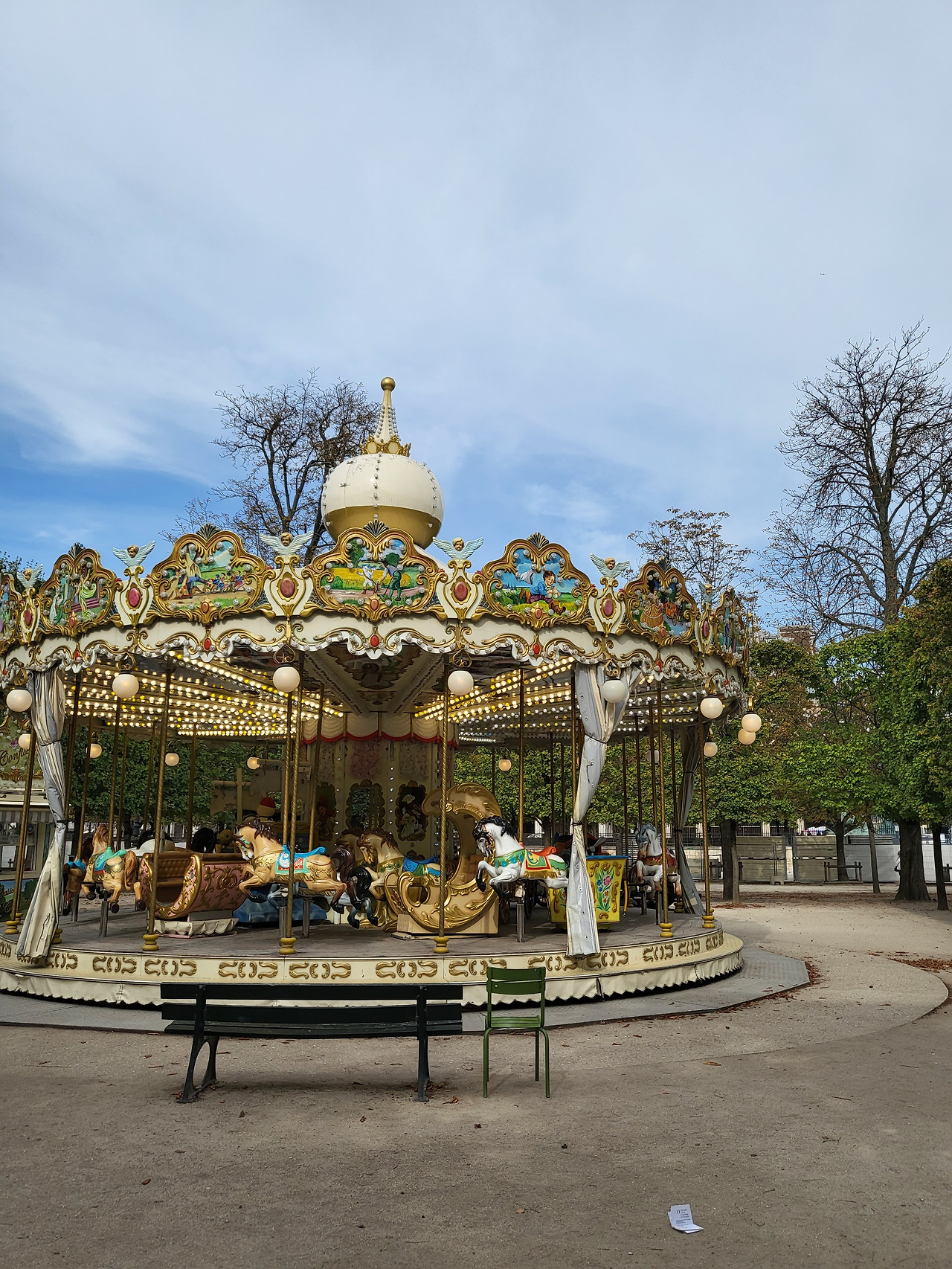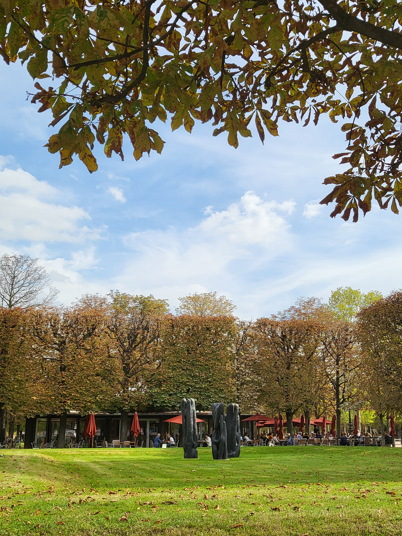 먹고 쉬면서 여유롭게 정원에 펼쳐지는 풍경들을 눈과 귀로 담았다. 정말 좋았던 게, 이렇게 큰 정원에 의자도 많이 있고 사람들도 여유롭게 원하는 곳에서 쉬면서 각 자의 방식대로 이 시간들을 온전히 즐기는 것 같았다. 걸으면서 이곳의 상징(?)처럼 메로나 같은 나무들이 쭉 보였는데, 알고 보니 르네상스 시대부터 프랑스 정원 양식(정형정원)으로 지금까지 내려오는 방식이라고 한다. 추가로, 앙리 2세 부인이 튈르리 궁전과 정원을 만들어달라고 했는데 1871년 파리 코뮌의 시가전 화재로 궁전은 철거되고 정원만 남게 된 안타까운 역사도 알 수 있었다.