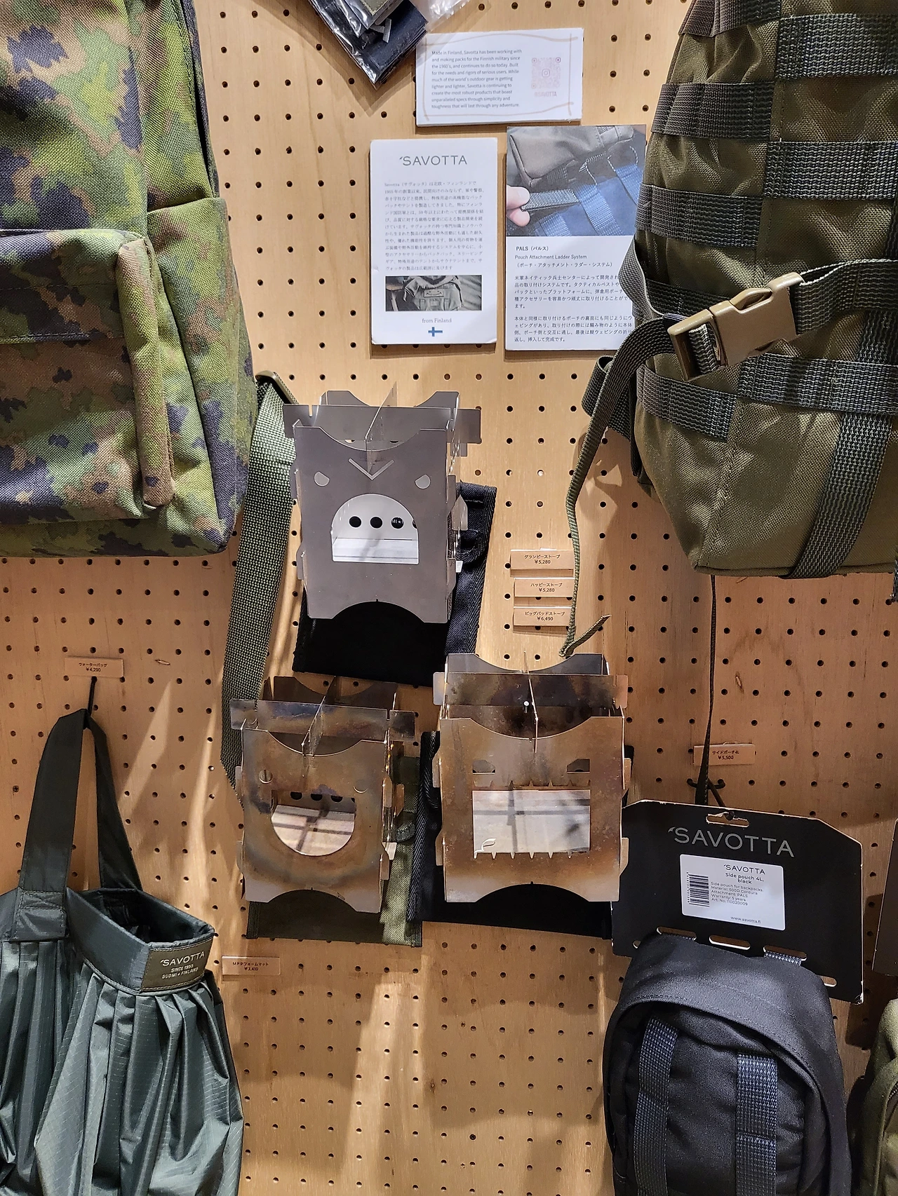 캠핑옷부터 수저, 화로대, 백패킹 용품 등 다양한 캠핑용품을 판매하고 있었다.