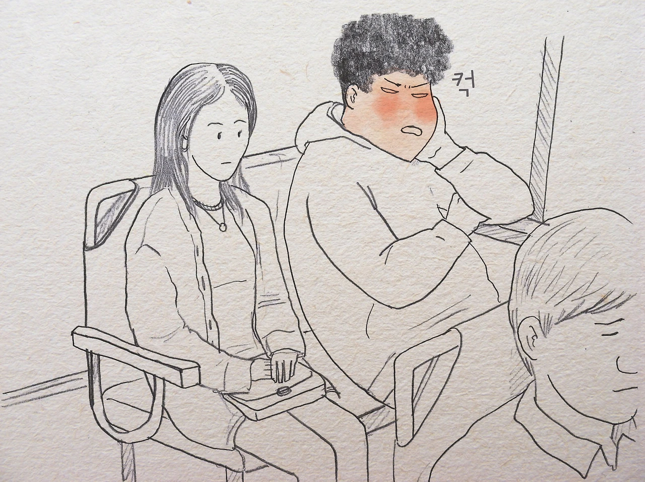 꼭 막걸리 먹고 술에 취하면 숨을 깊게 쉬곤 하는데, 집에 가는 버스 안에서도 거칠게 숨을 쉬던 중 갑자기 코를 확 찌르는 향수 냄새를 들이켰다.