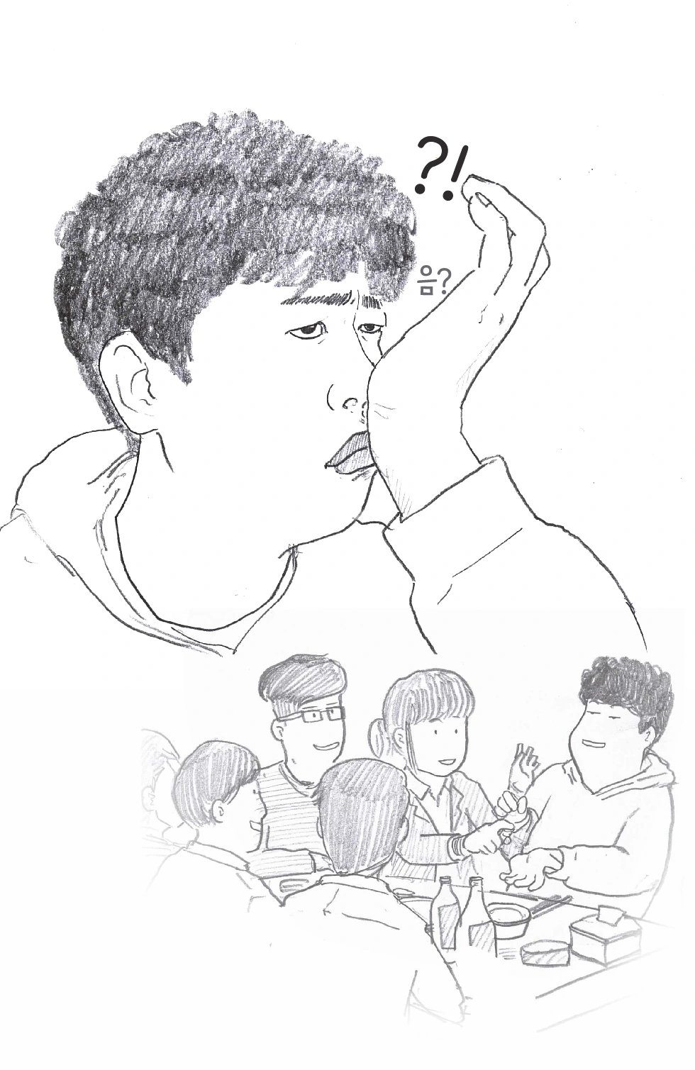 "아 맞다. 아까 정민이가 향수 선물 받았다며 내 손목에 엄청 뿌렸었구나!"
