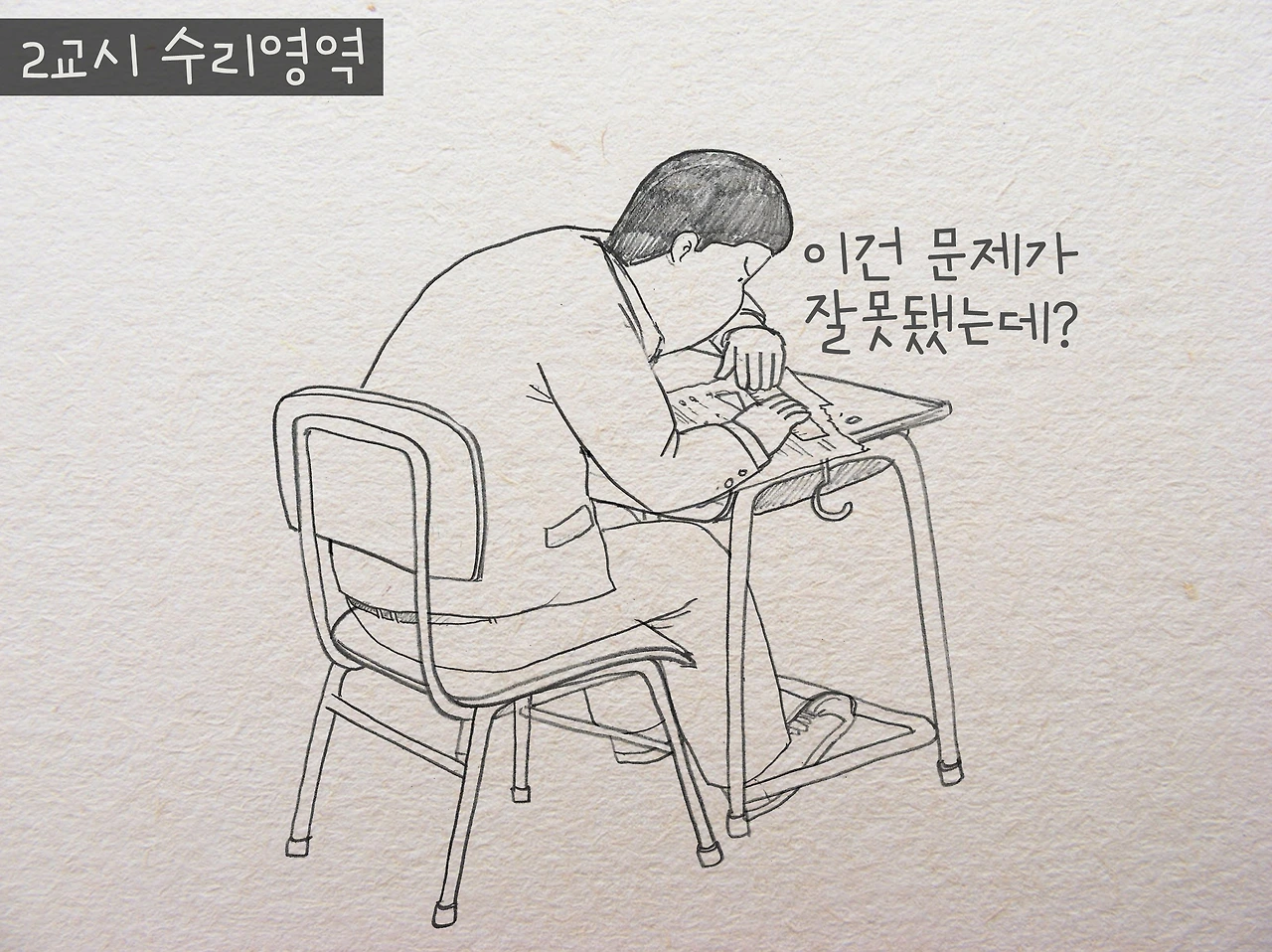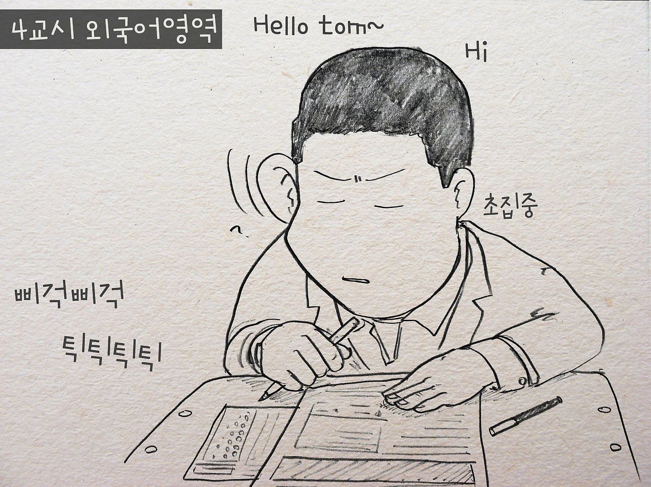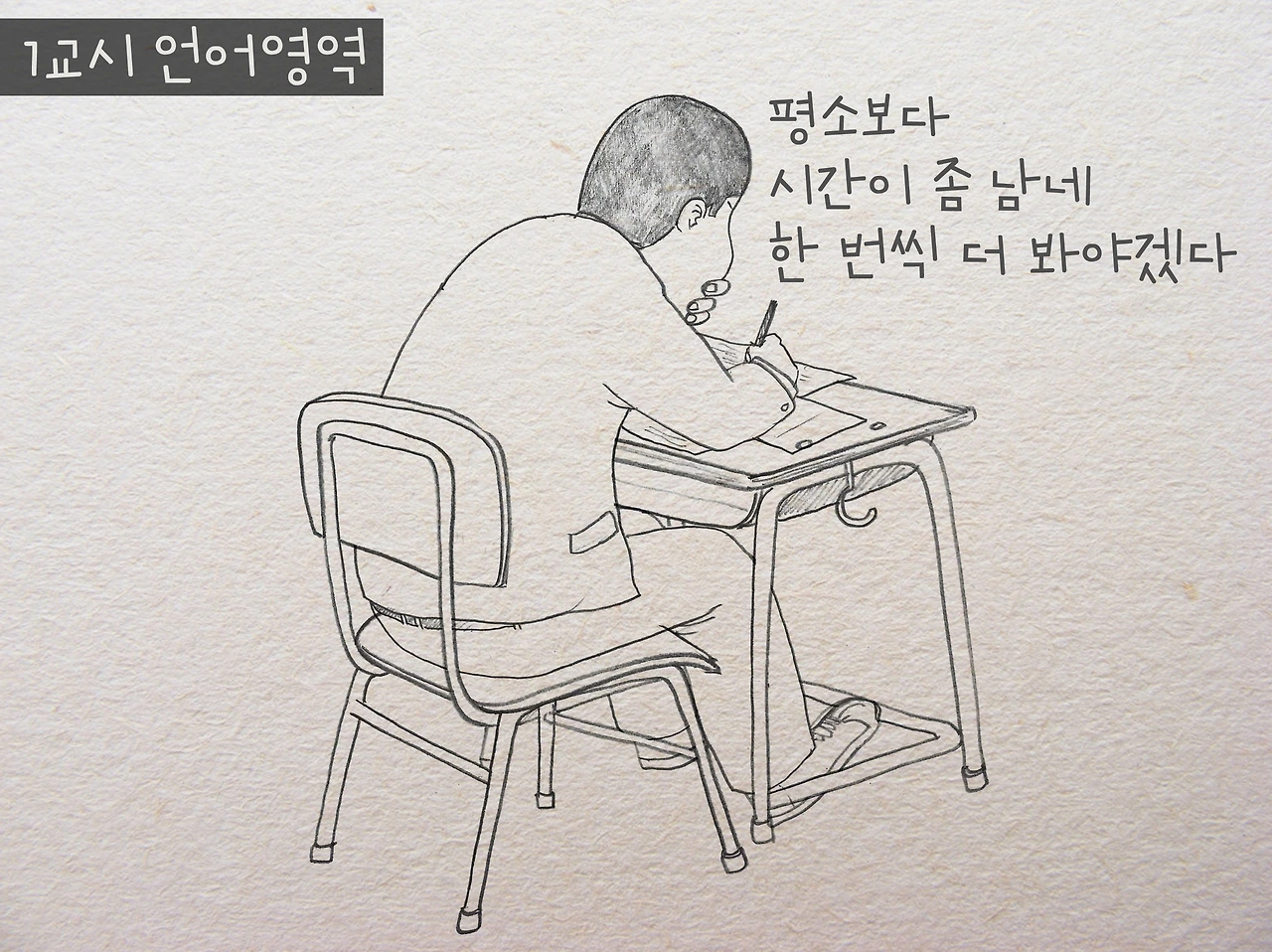 언어영역은 읽고 푸는 거니 부담 없이 풀었는데, 평소 모의고사 볼 때보다 시간이 남아 처음부터 신중하게 다시 읽어보며 정답을 확인했다. 이젠 됐다 싶어 OMR 카드에 마킹을 시작했는데